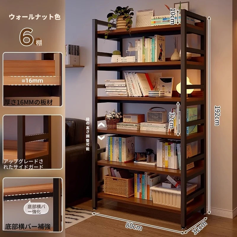 【送料無料】ウォールナットの六段【長さ80*幅32*高さ192】太い20管 階高調整可能