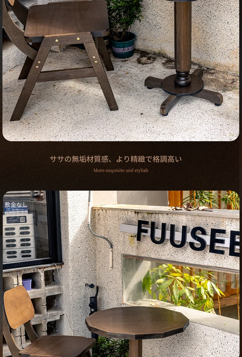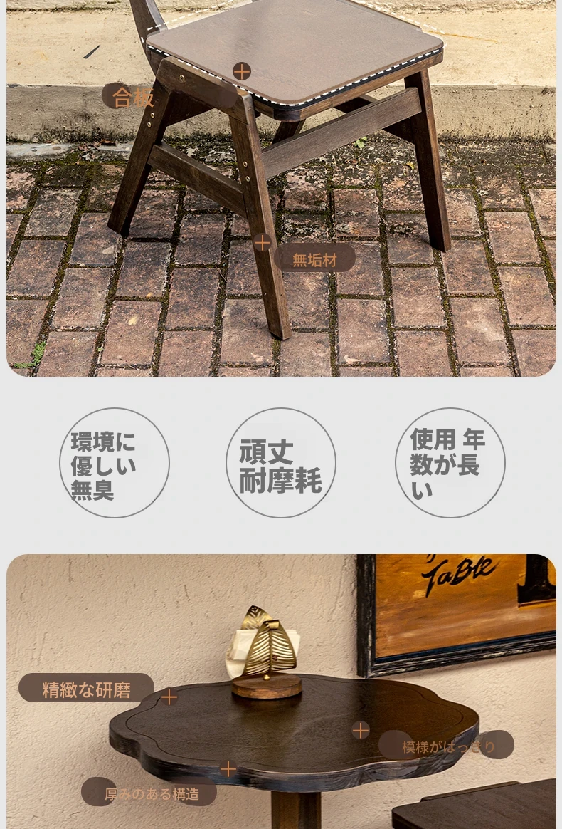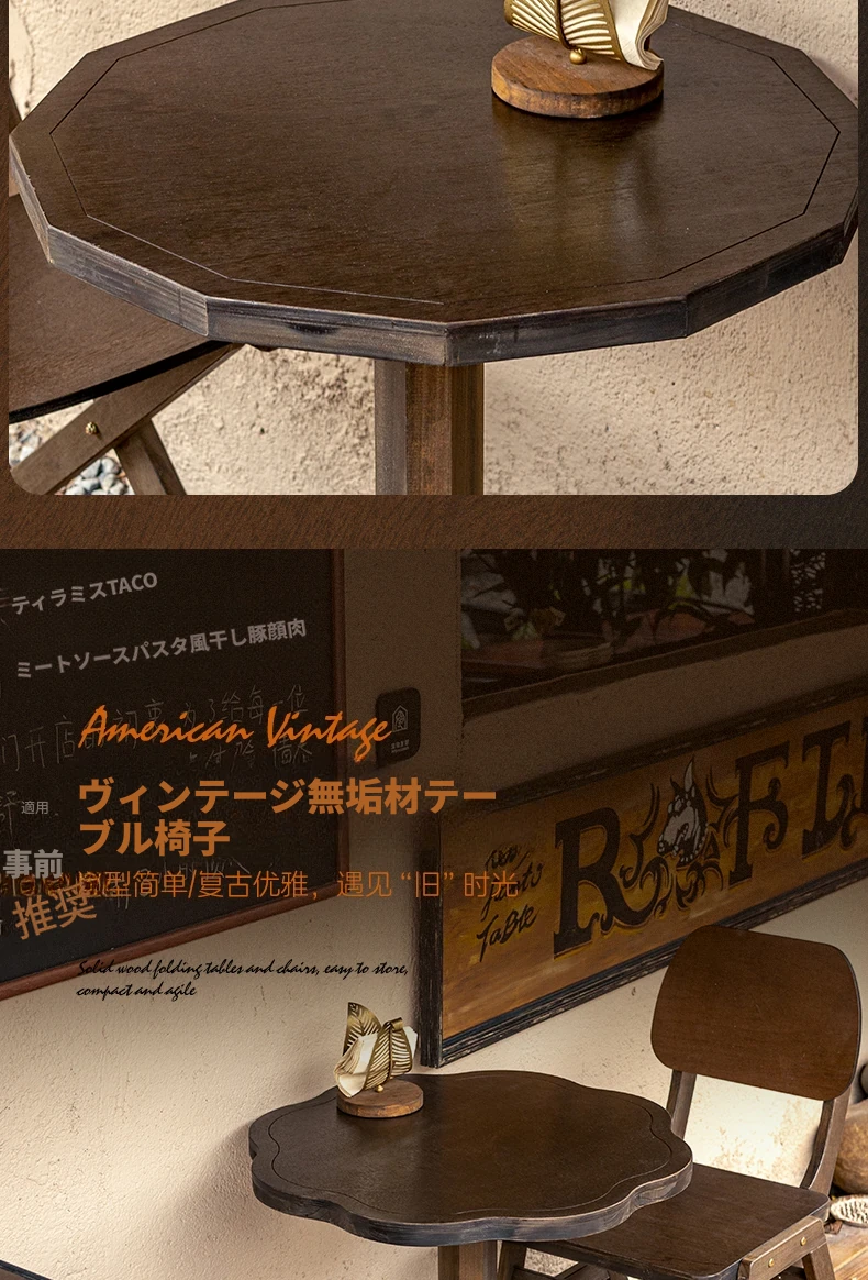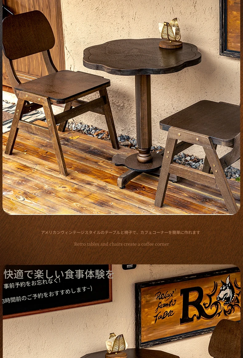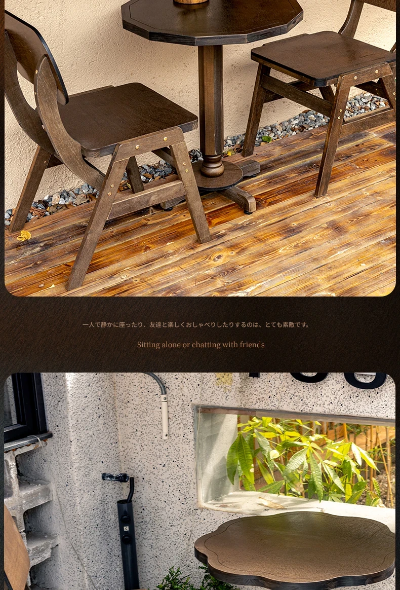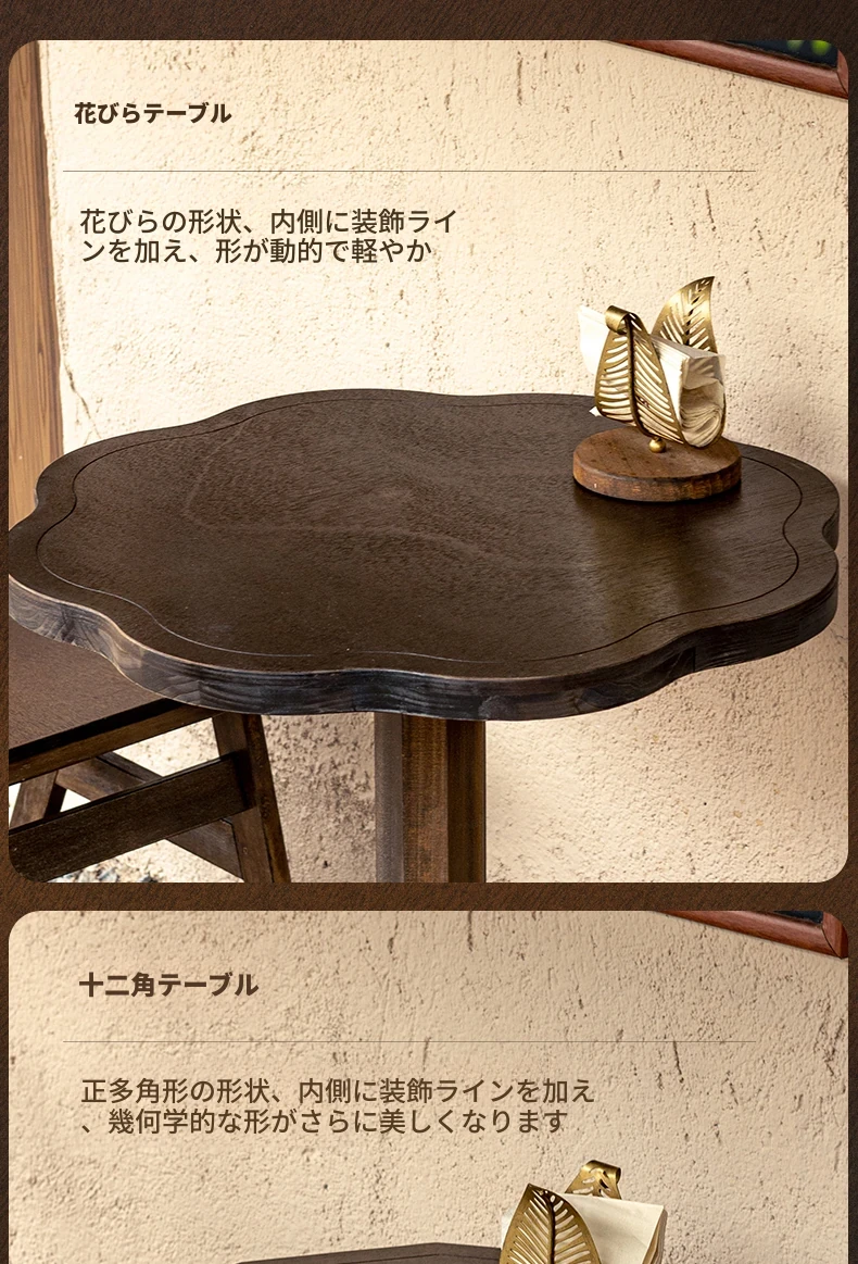 中式レトロデザインの無垢材テーブルとリラックスチェア - 小型住宅に最適!リビングやバルコニー、ダイニングにぴったりの円形・角形テーブル。心地良い時間をお楽しみください。