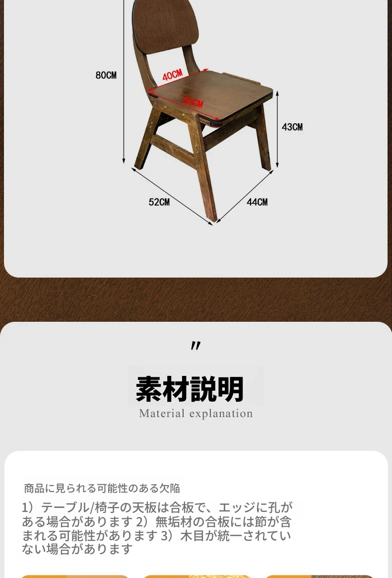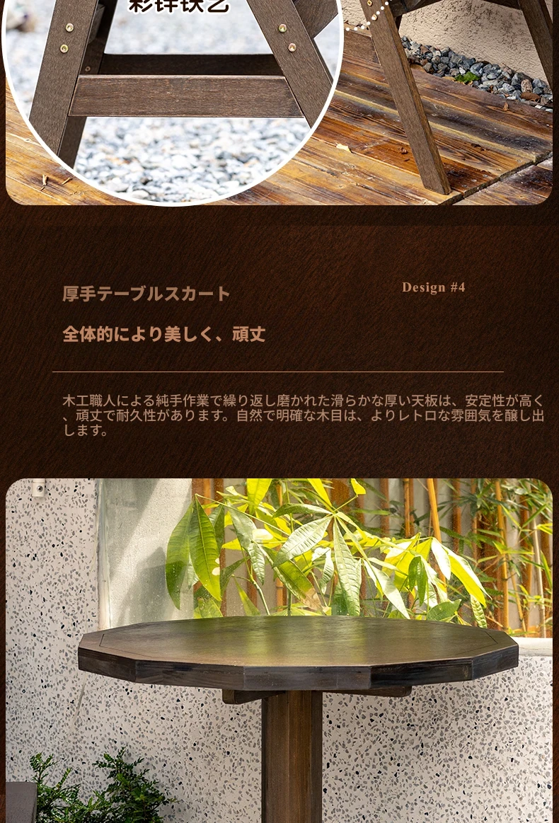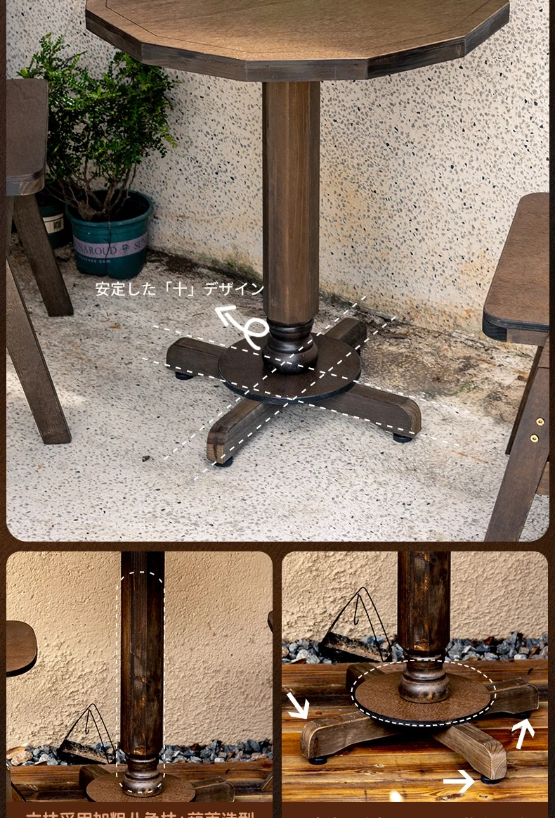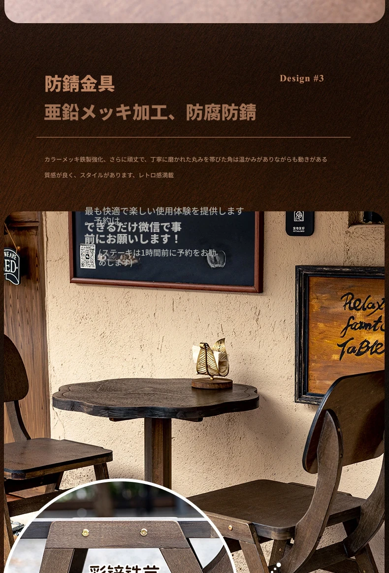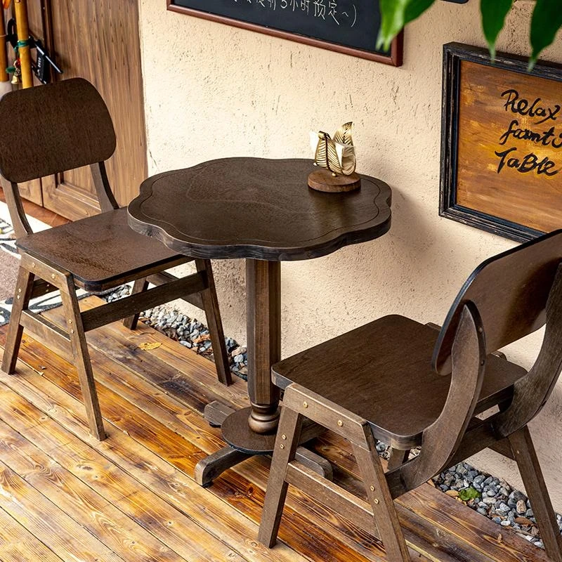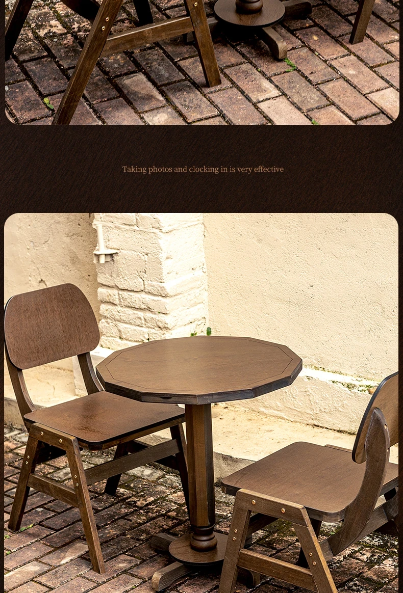 中式レトロデザインの無垢材テーブルとリラックスチェア - 小型住宅に最適!リビングやバルコニー、ダイニングにぴったりの円形・角形テーブル。心地良い時間をお楽しみください。