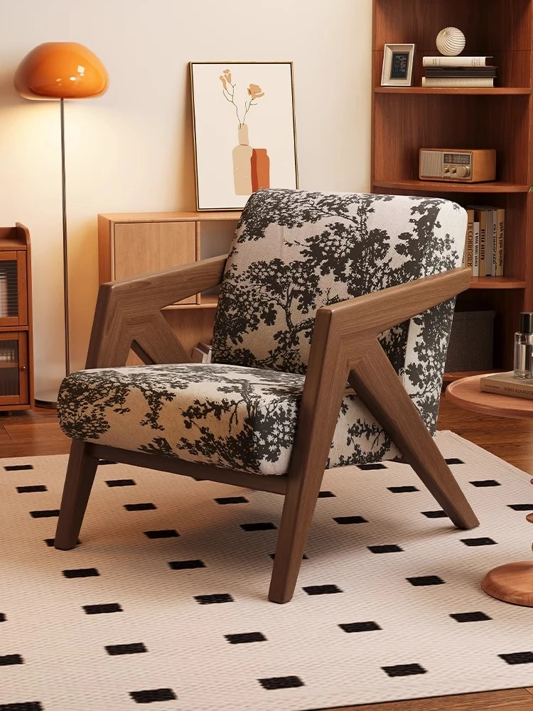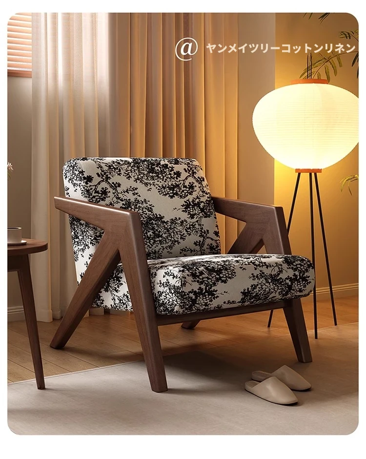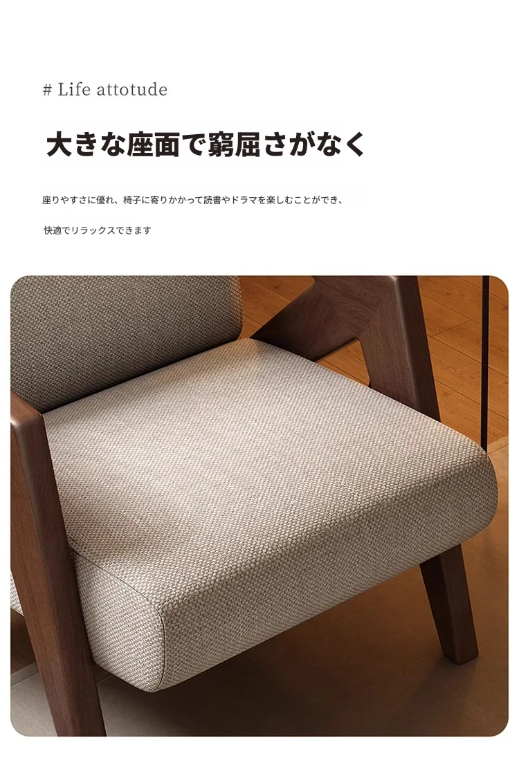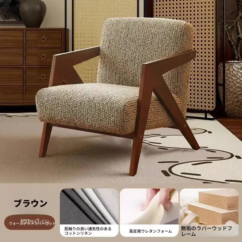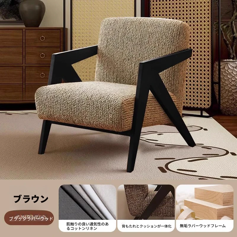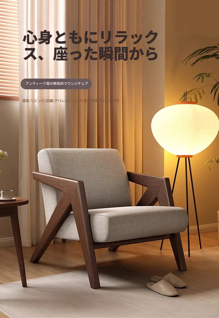ヴィンテージ風リチャード無垢材シングルソファー椅子 - 侘寂の美を楽しむ、宿泊施設やホテルのリビングやバルコニーに最適なリラックス空間を提供します。おしゃれで心地よいひとときをお過ごしください。