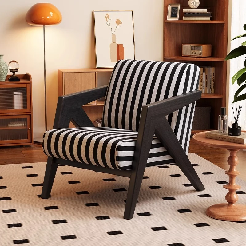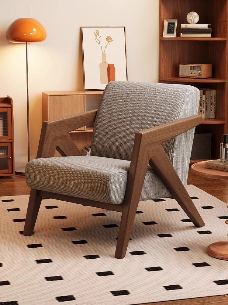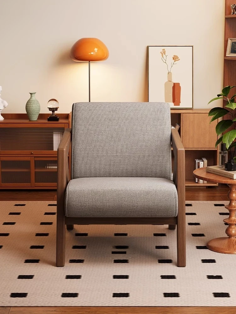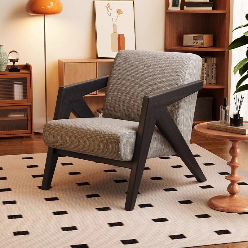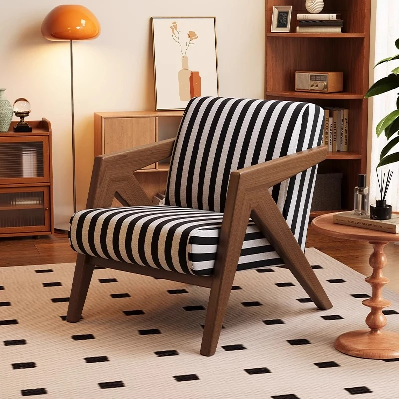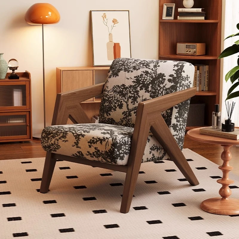 ヴィンテージ風リチャード無垢材シングルソファー椅子 - 侘寂の美を楽しむ、宿泊施設やホテルのリビングやバルコニーに最適なリラックス空間を提供します。おしゃれで心地よいひとときをお過ごしください。
