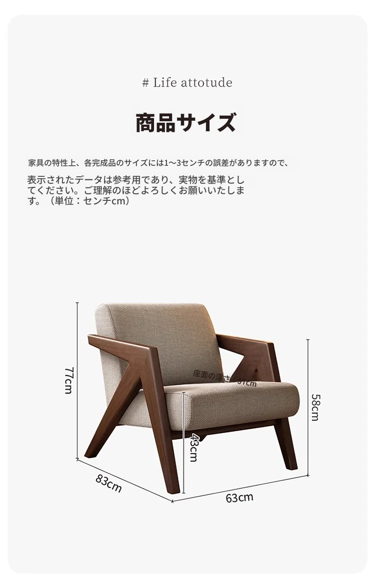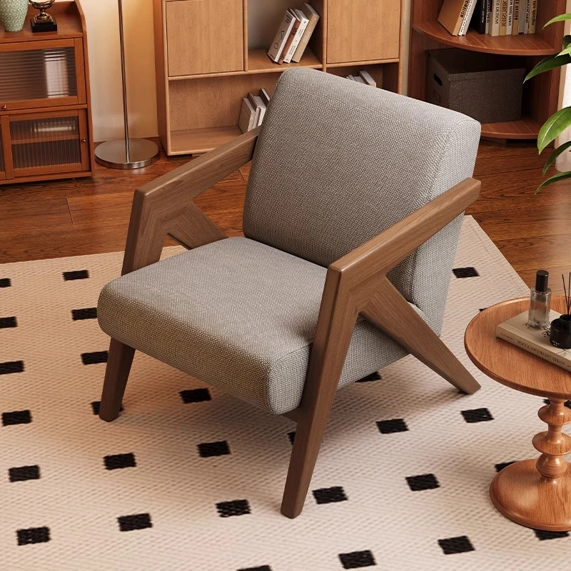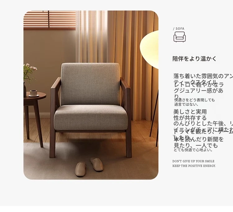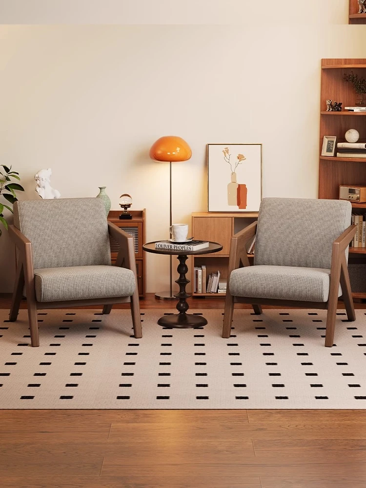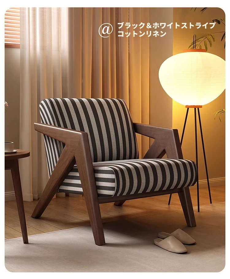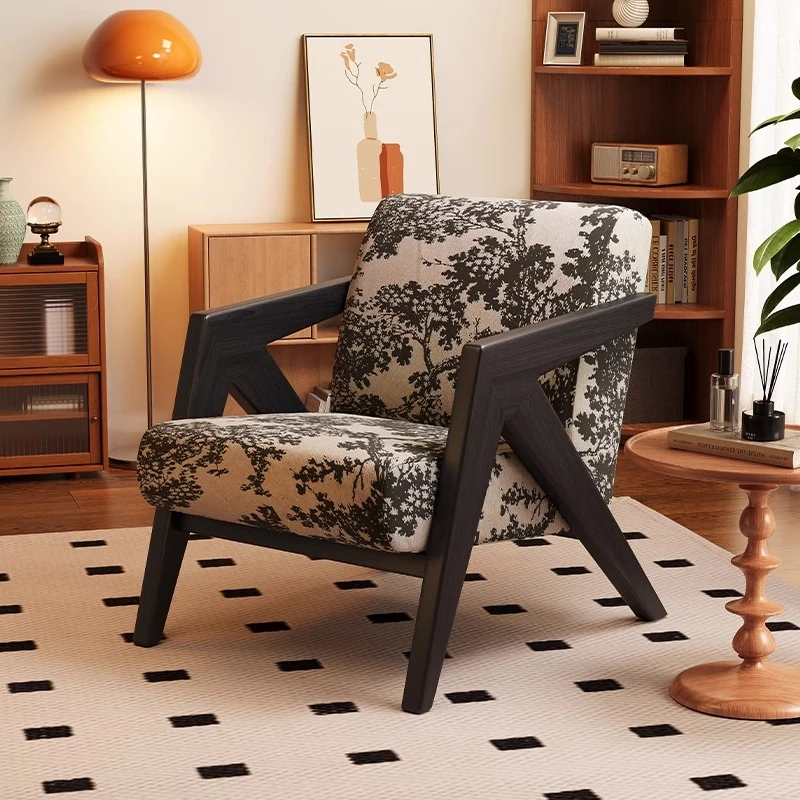 ヴィンテージ風リチャード無垢材シングルソファー椅子 - 侘寂の美を楽しむ、宿泊施設やホテルのリビングやバルコニーに最適なリラックス空間を提供します。おしゃれで心地よいひとときをお過ごしください。