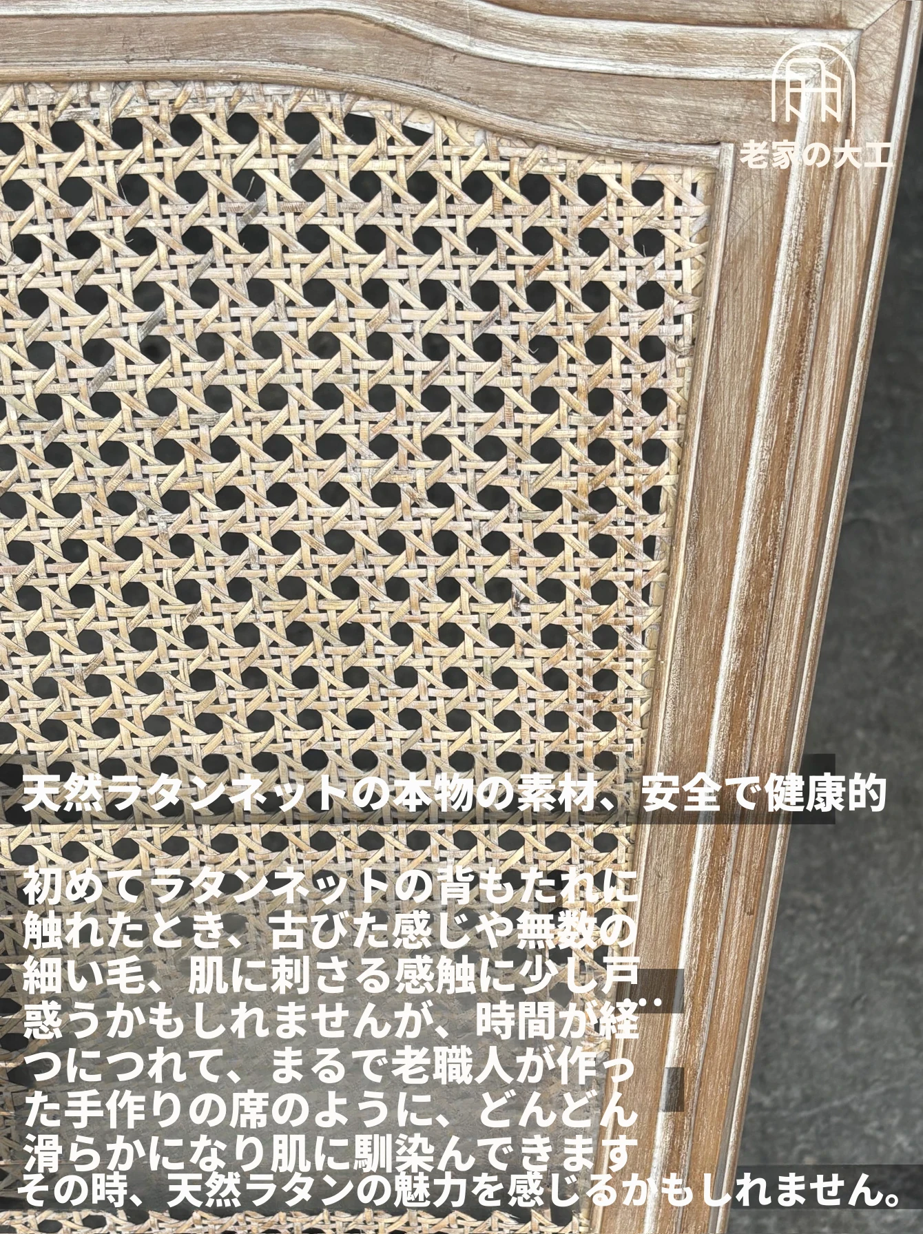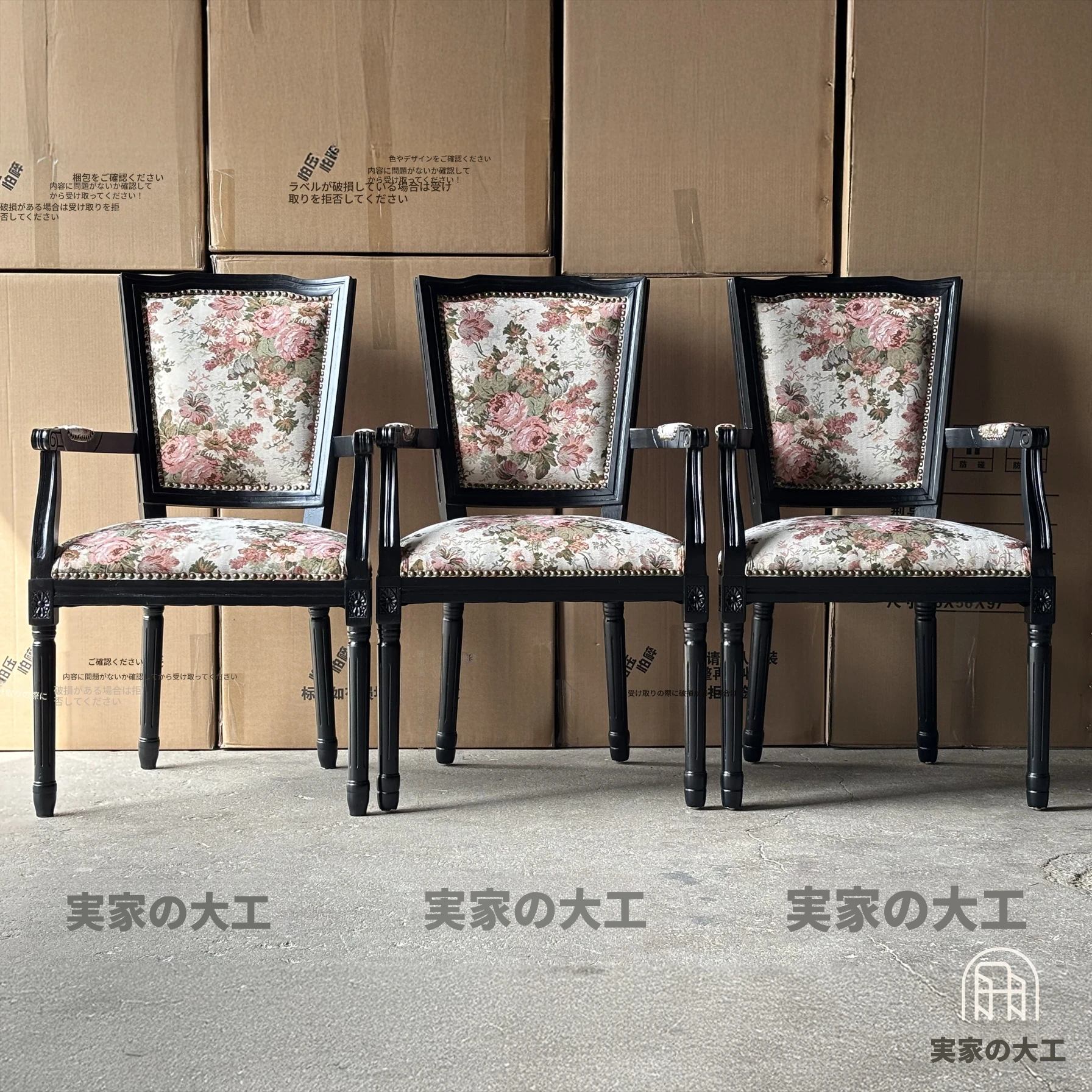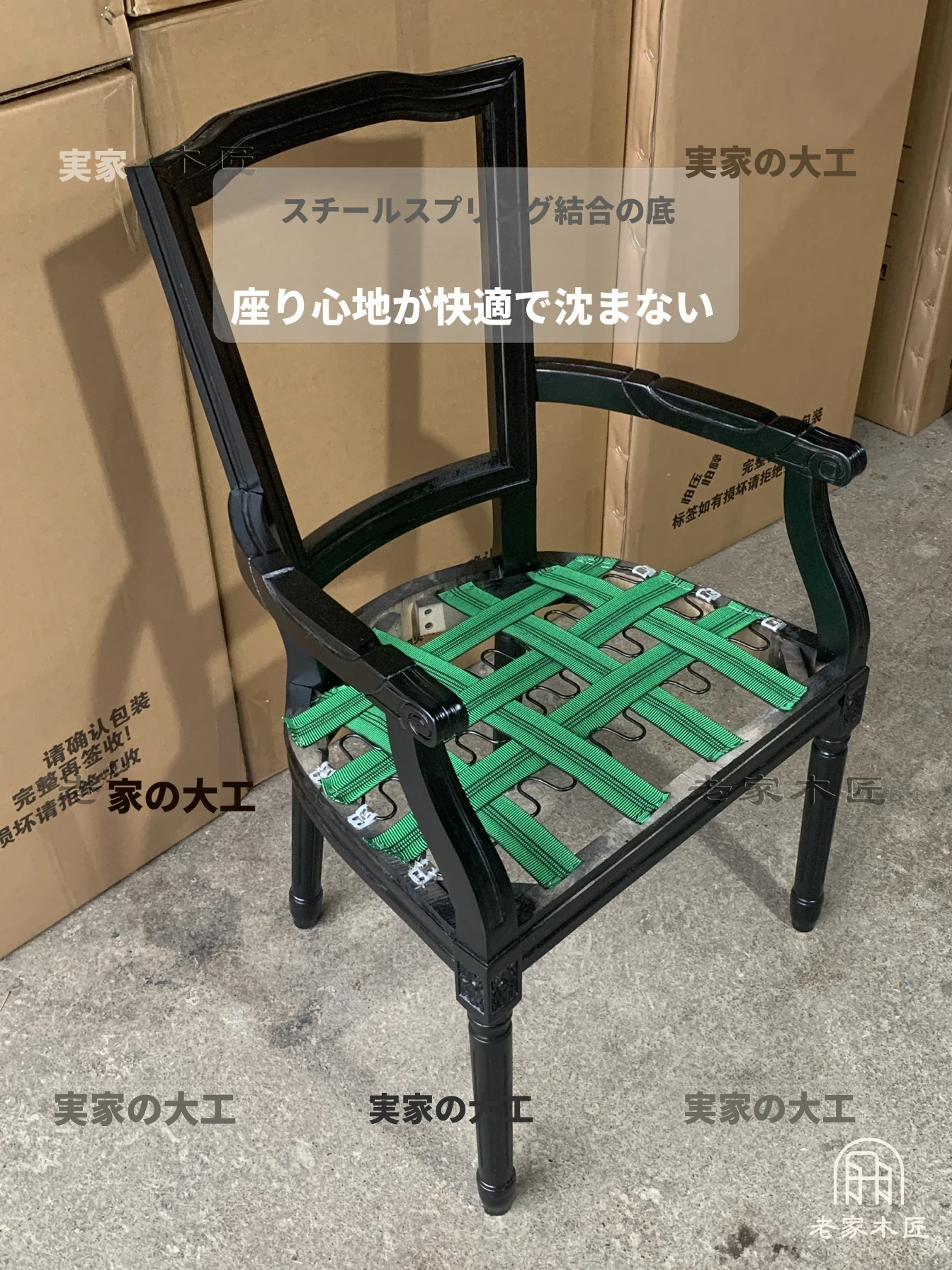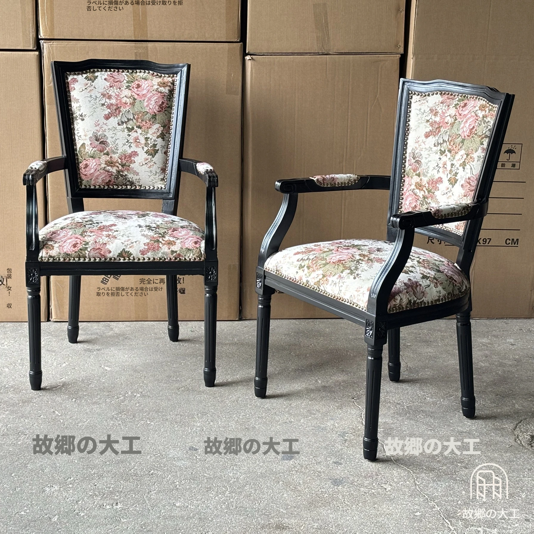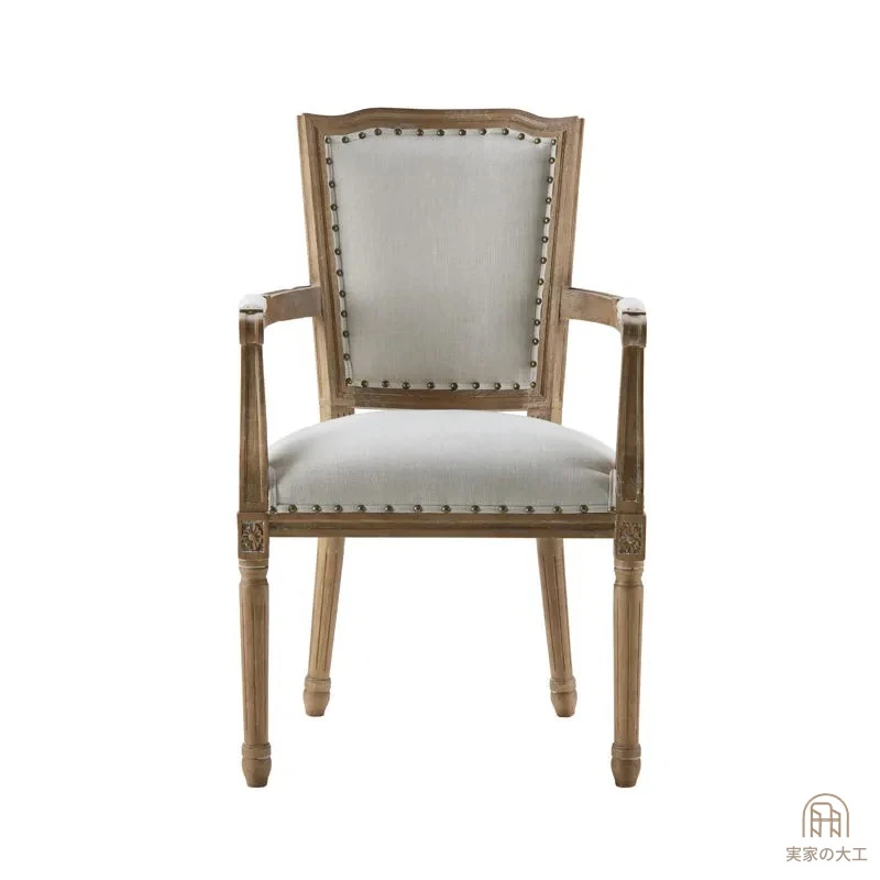 アメリカンカントリースタイルの無垢材ダイニングチェア - ヴィンテージ感あふれるデザインで、民宿やホテル、レストランにぴったり!心地よい音楽と共に、くつろぎのひとときをお届けします。アメリカンアームチェア。