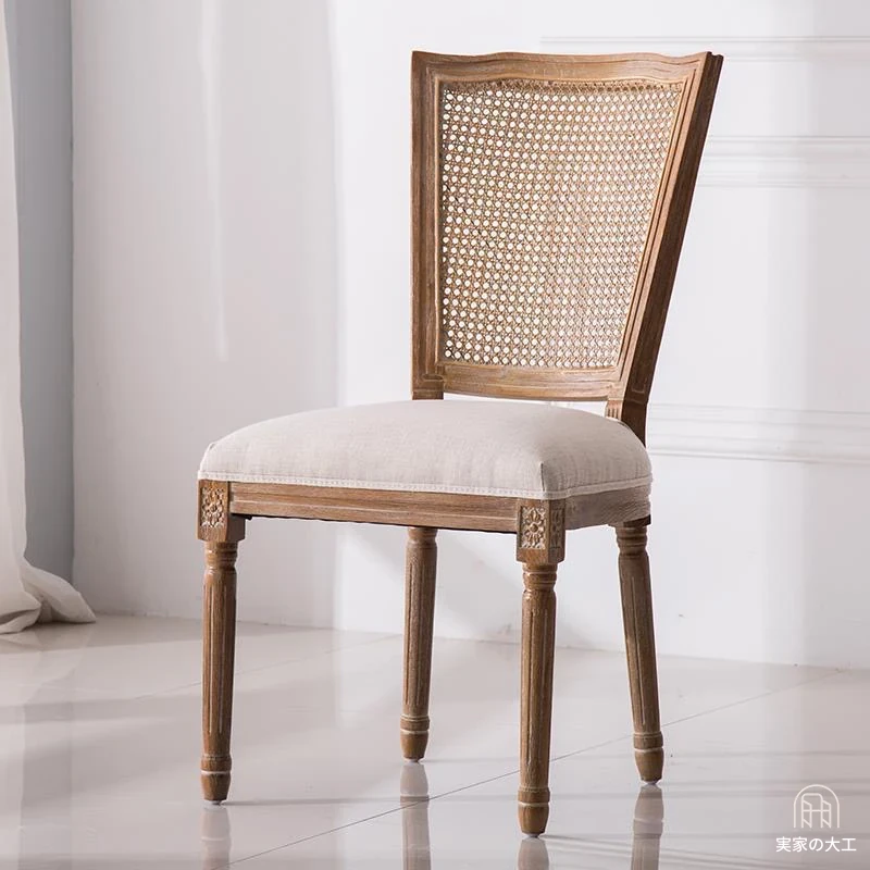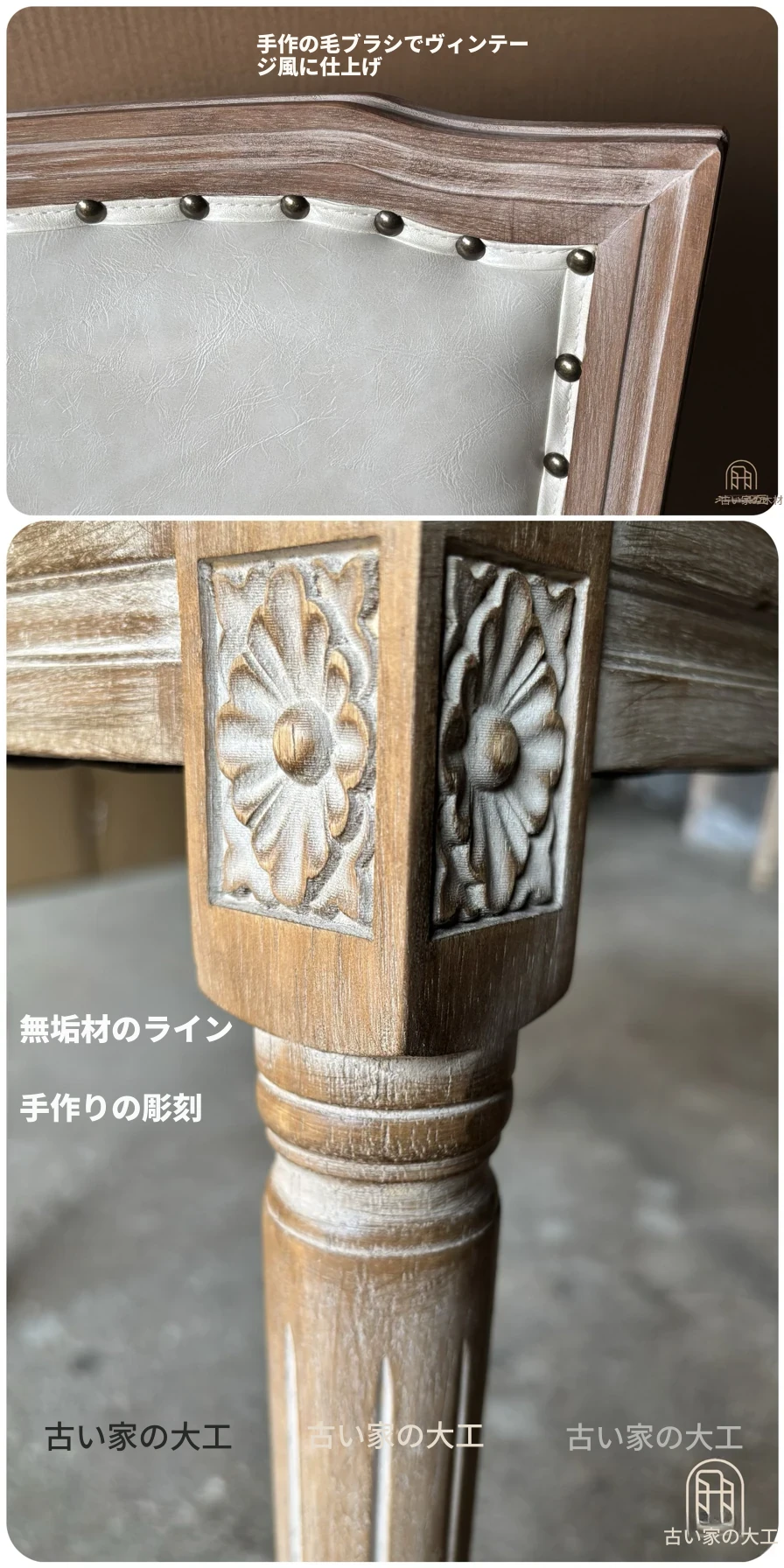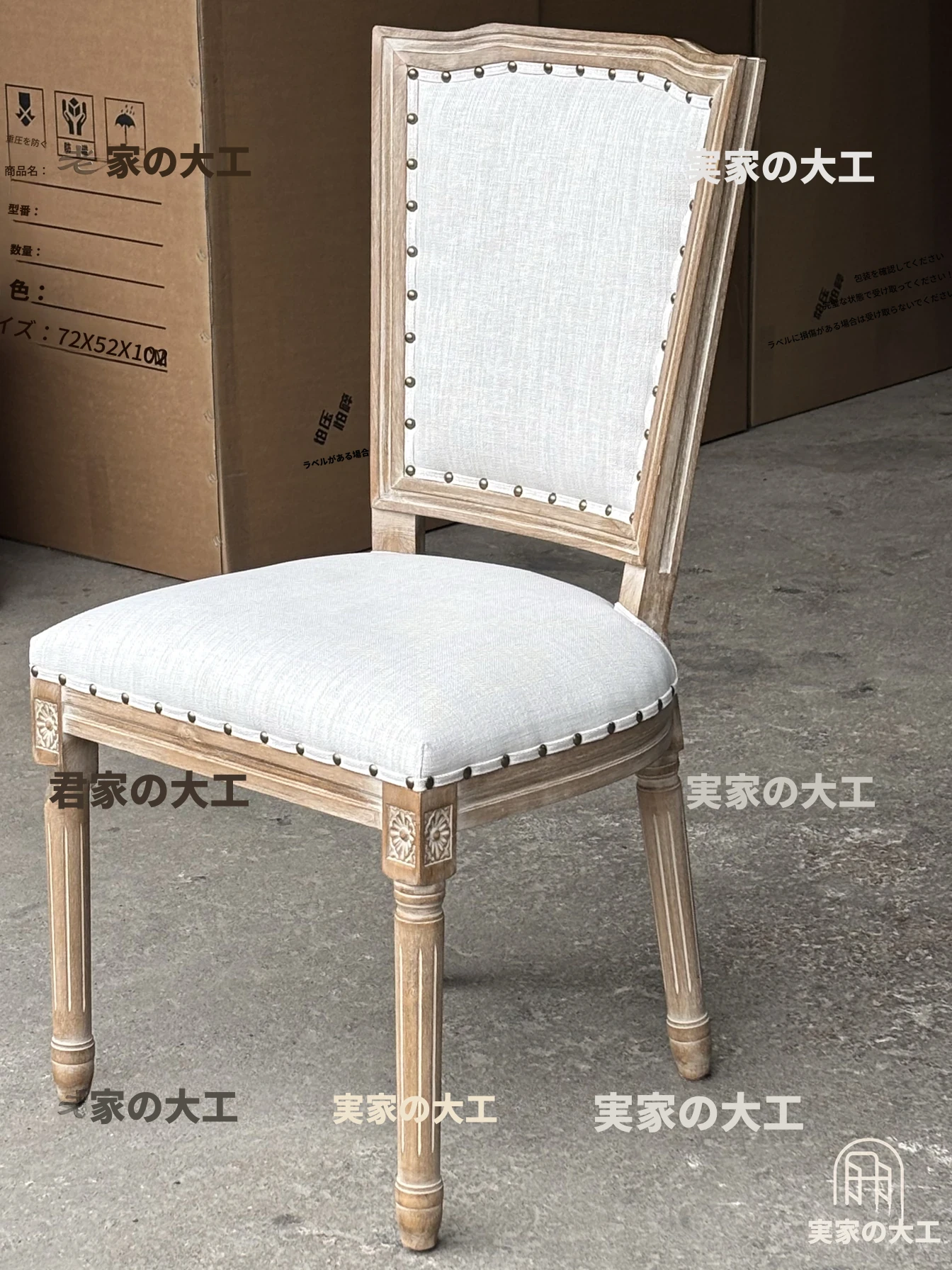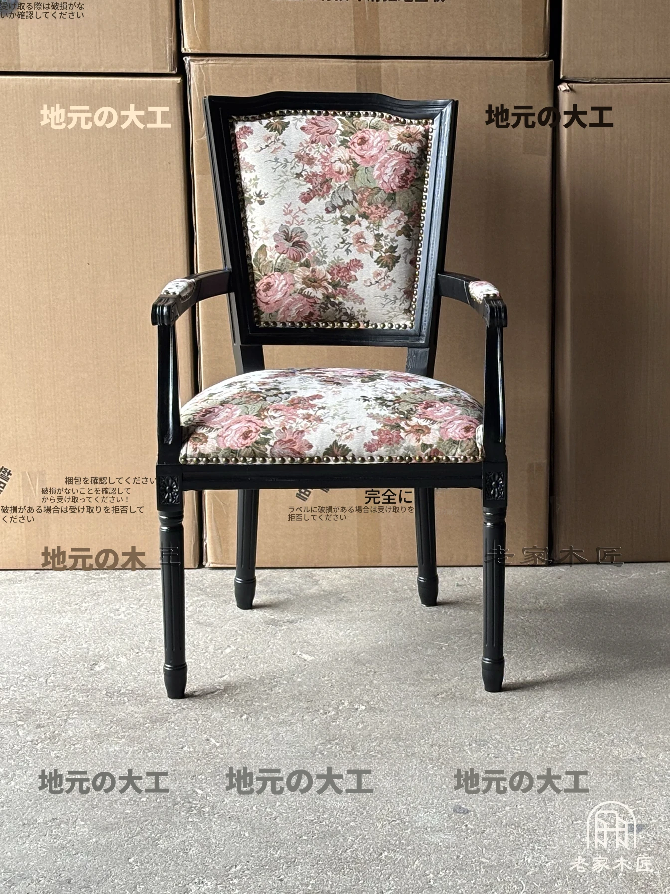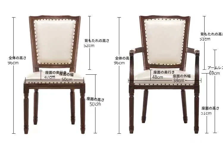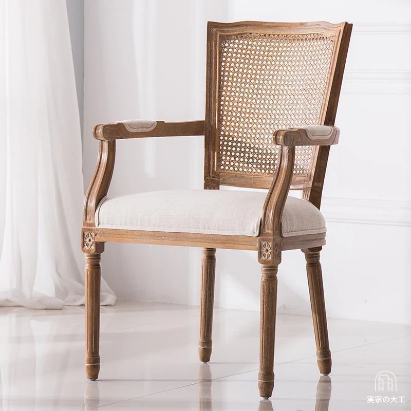 アメリカンカントリースタイルの無垢材ダイニングチェア - ヴィンテージ感あふれるデザインで、民宿やホテル、レストランにぴったり!心地よい音楽と共に、くつろぎのひとときをお届けします。アメリカンアームチェア。