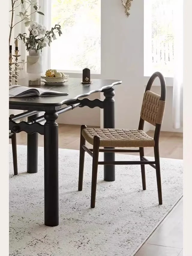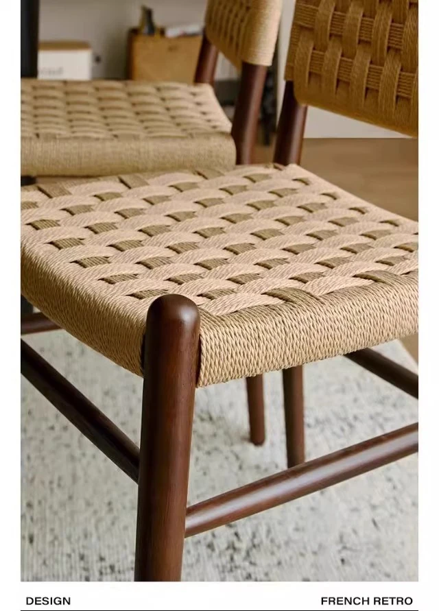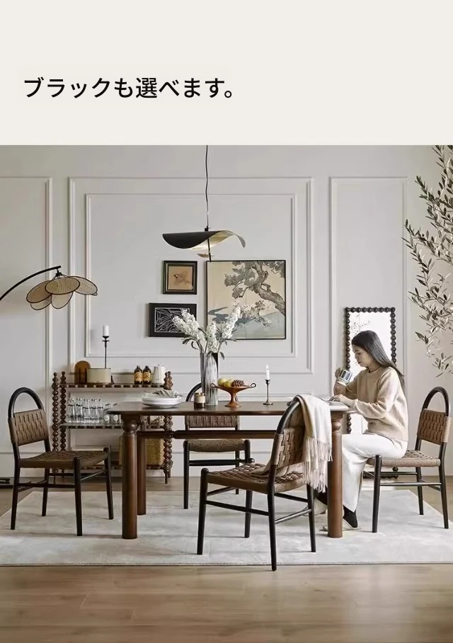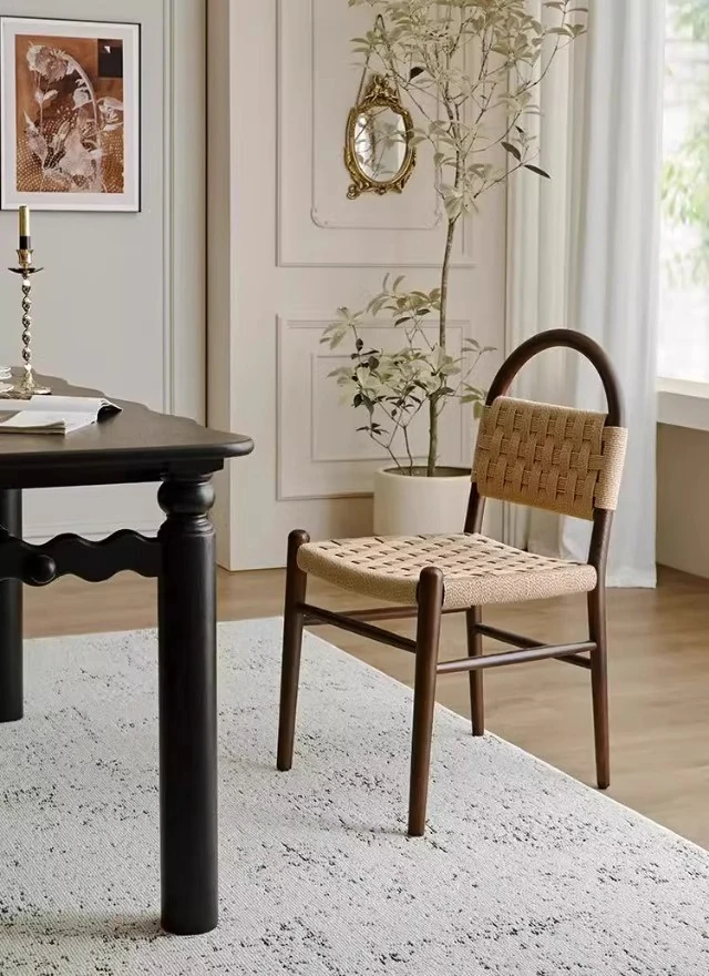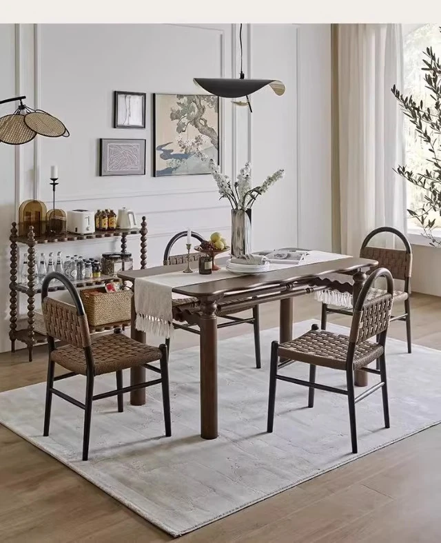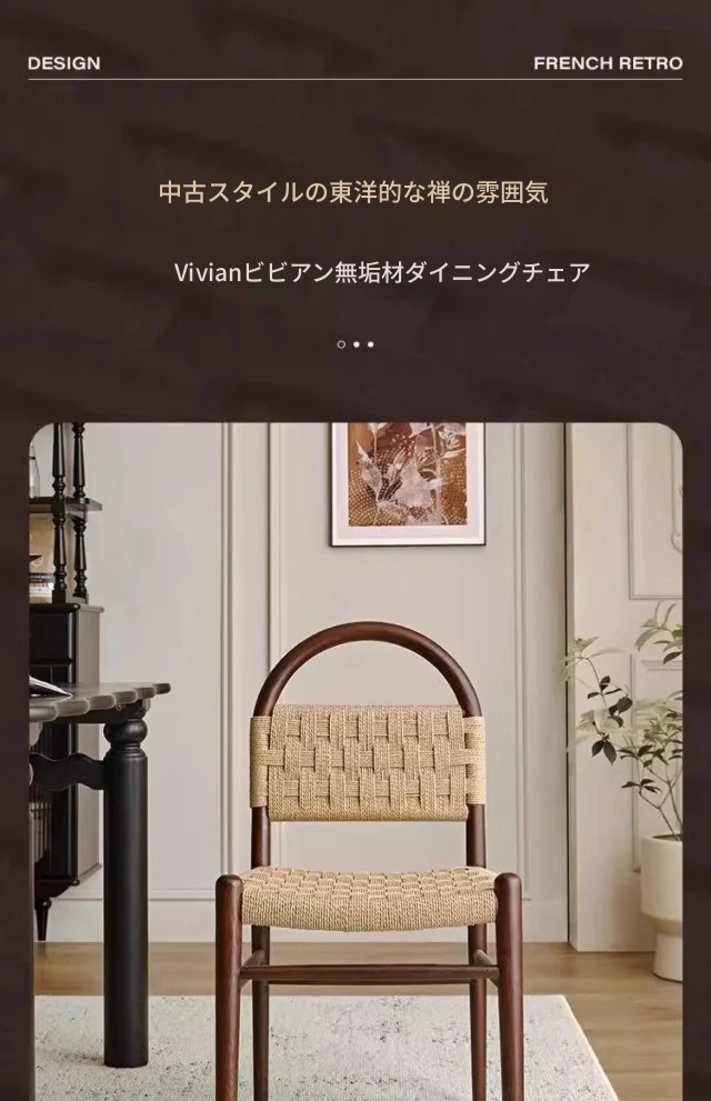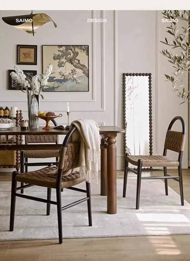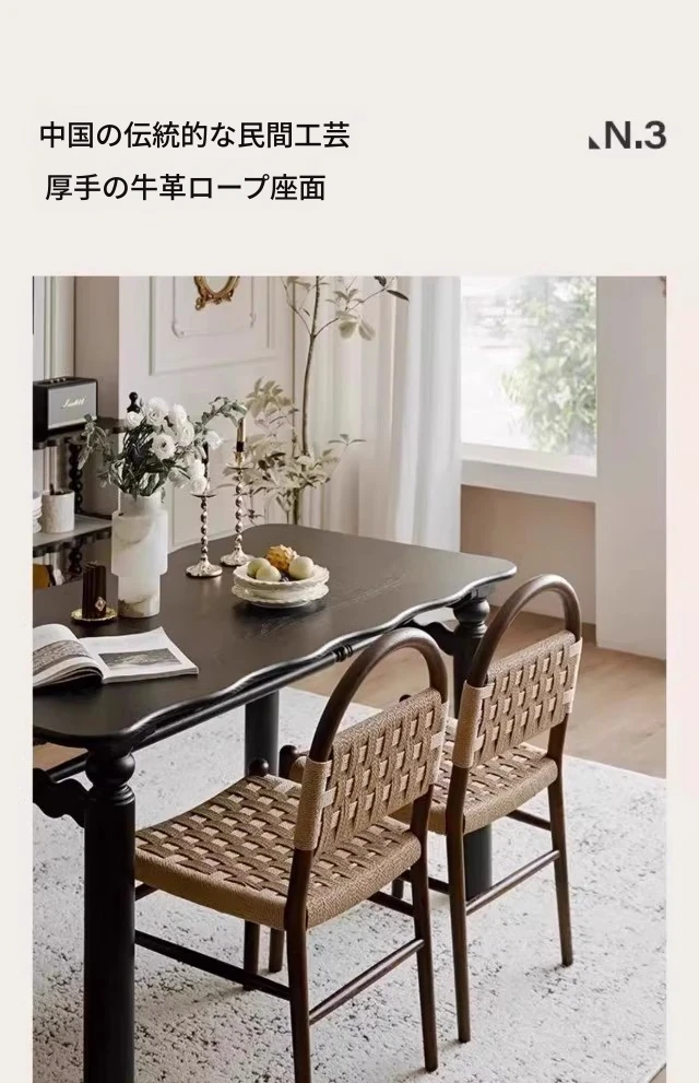 レトロスタイルのダイニングテーブルセット!天然木製の家用家具、籐編みの背もたれ付きリラックスチェア。化粧や読書に最適、フロントデスクやバーにもぴったりのスタイリッシュなチェア!