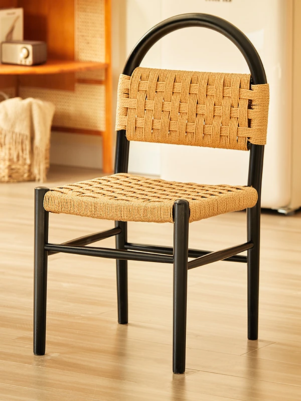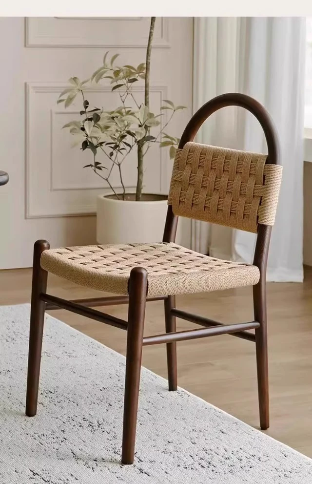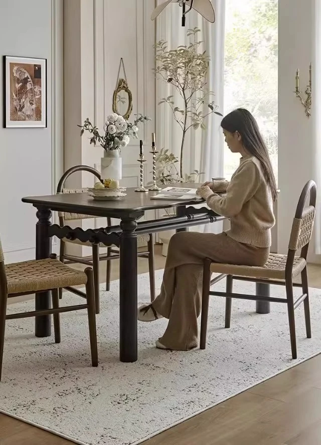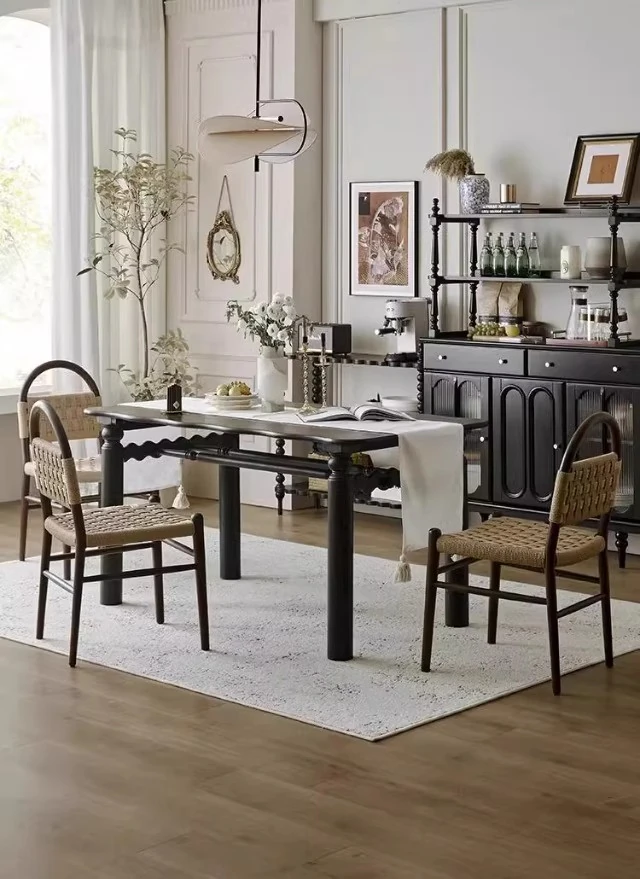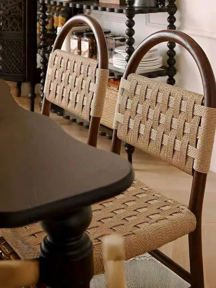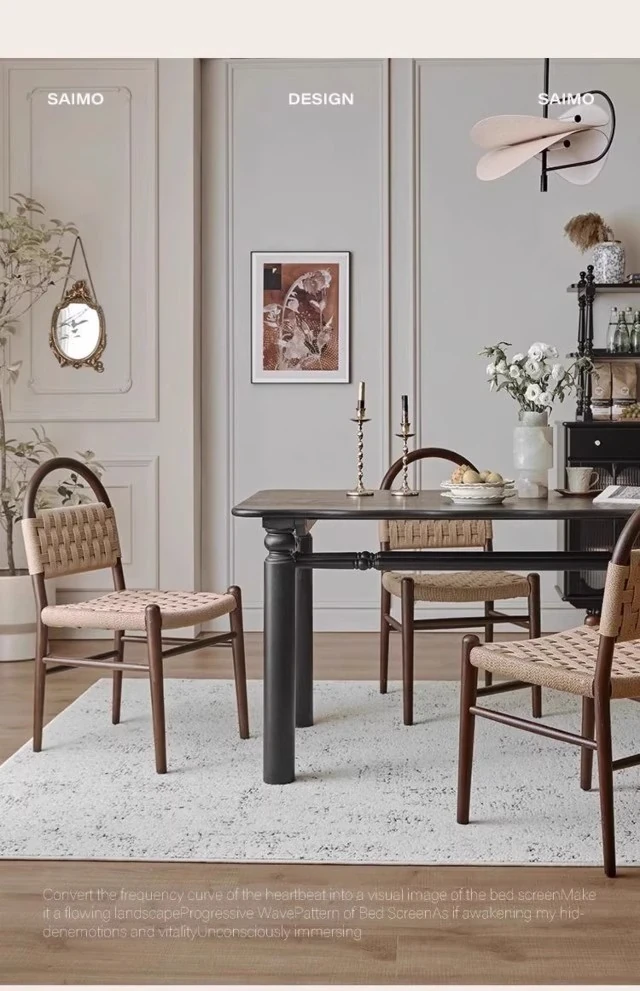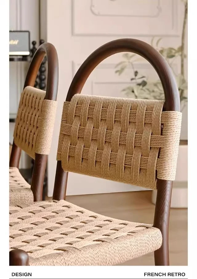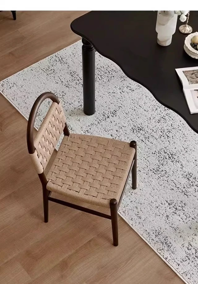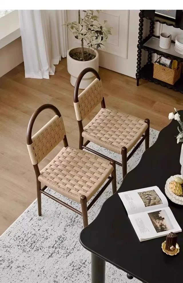 レトロスタイルのダイニングテーブルセット!天然木製の家用家具、籐編みの背もたれ付きリラックスチェア。化粧や読書に最適、フロントデスクやバーにもぴったりのスタイリッシュなチェア!