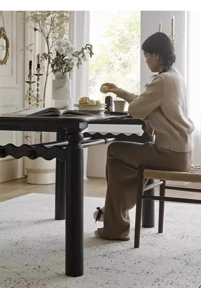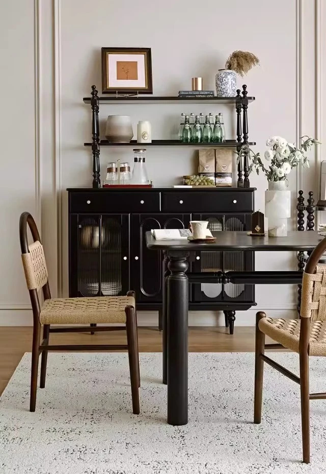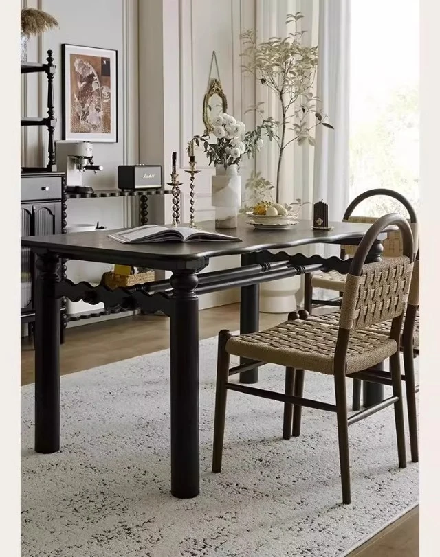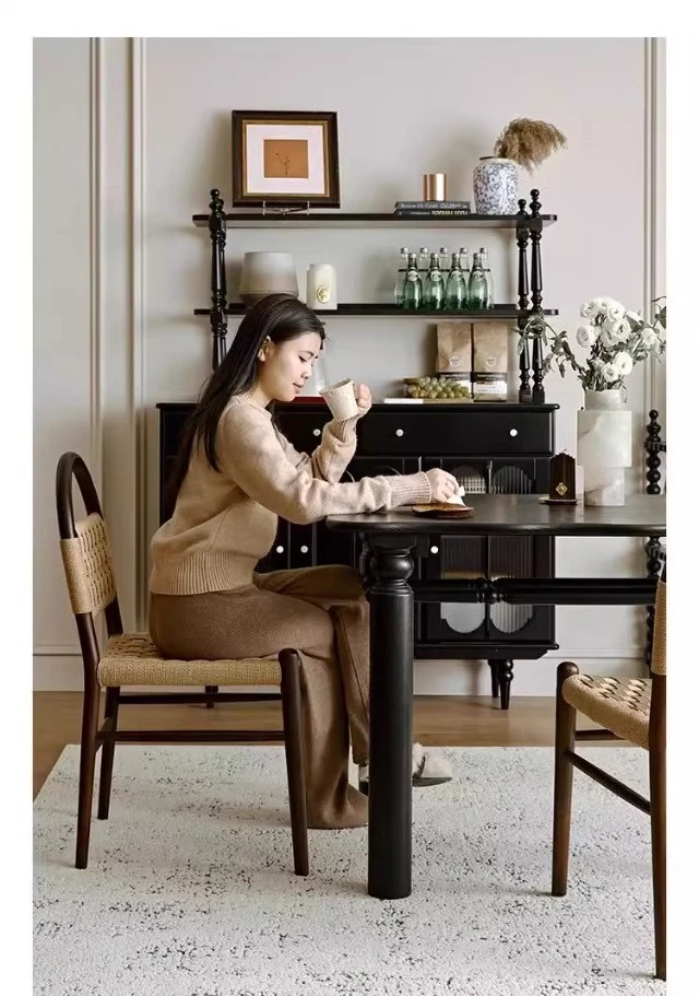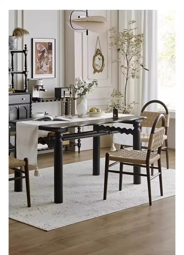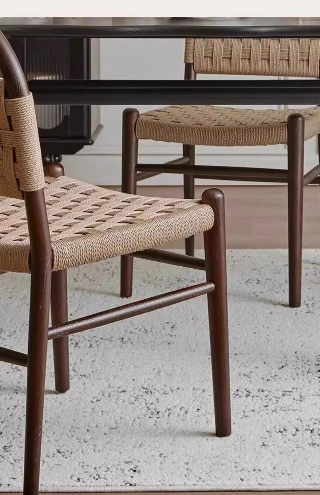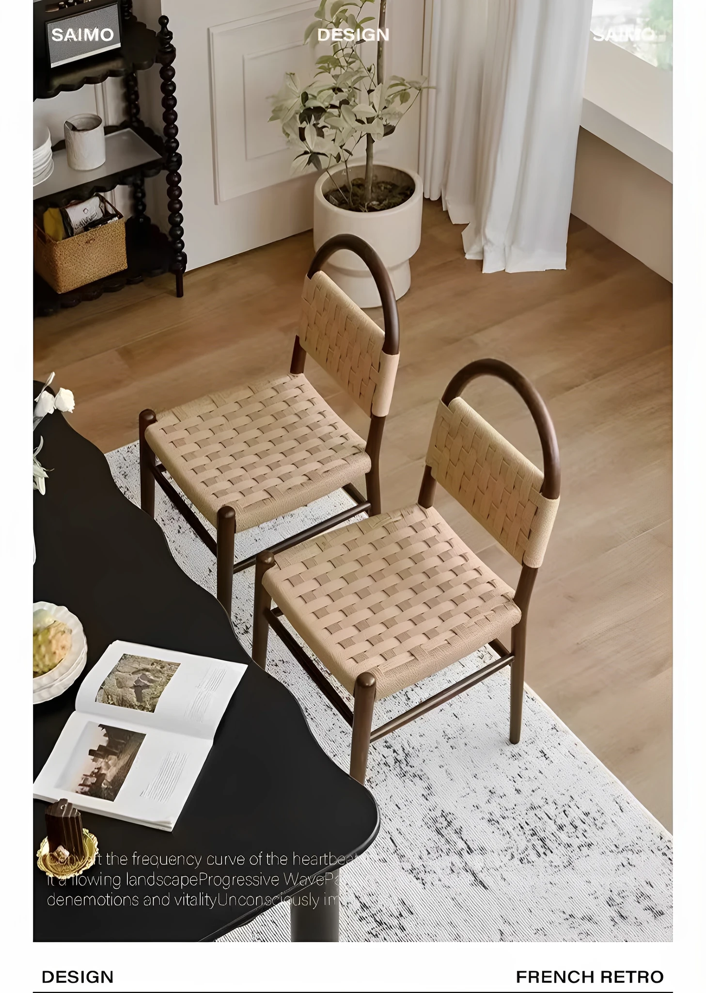 レトロスタイルのダイニングテーブルセット!天然木製の家用家具、籐編みの背もたれ付きリラックスチェア。化粧や読書に最適、フロントデスクやバーにもぴったりのスタイリッシュなチェア!