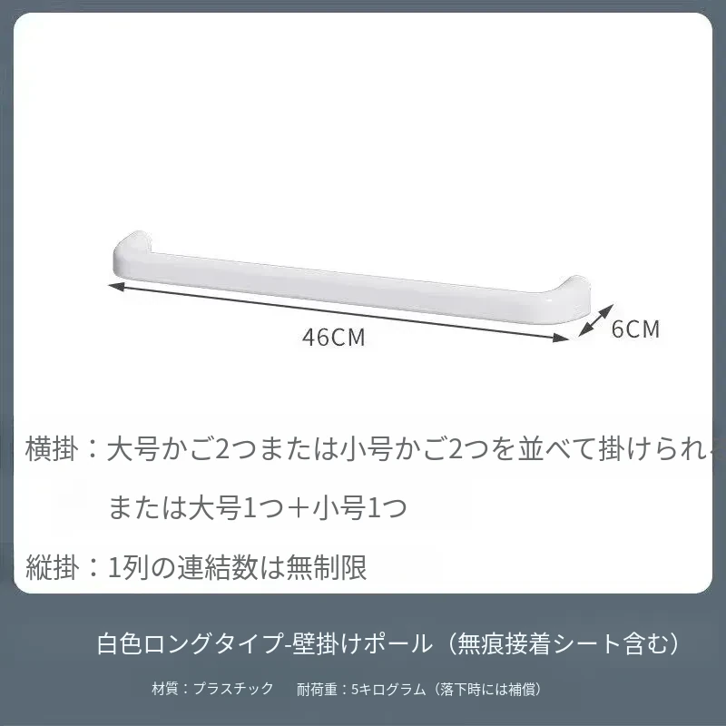 壁掛け棒-ロング【無痕粘着シート付き】