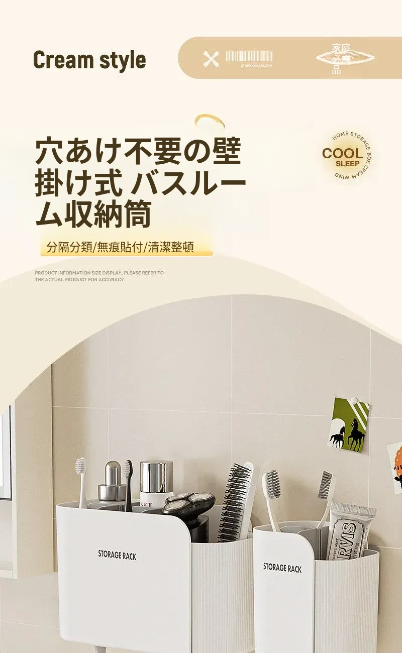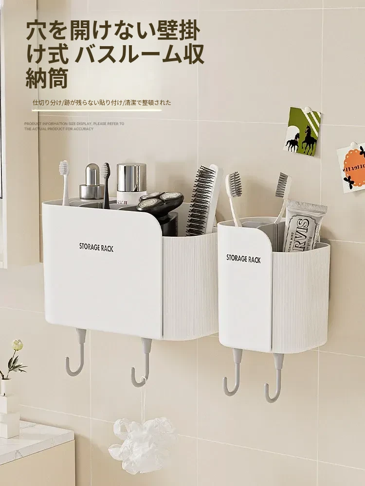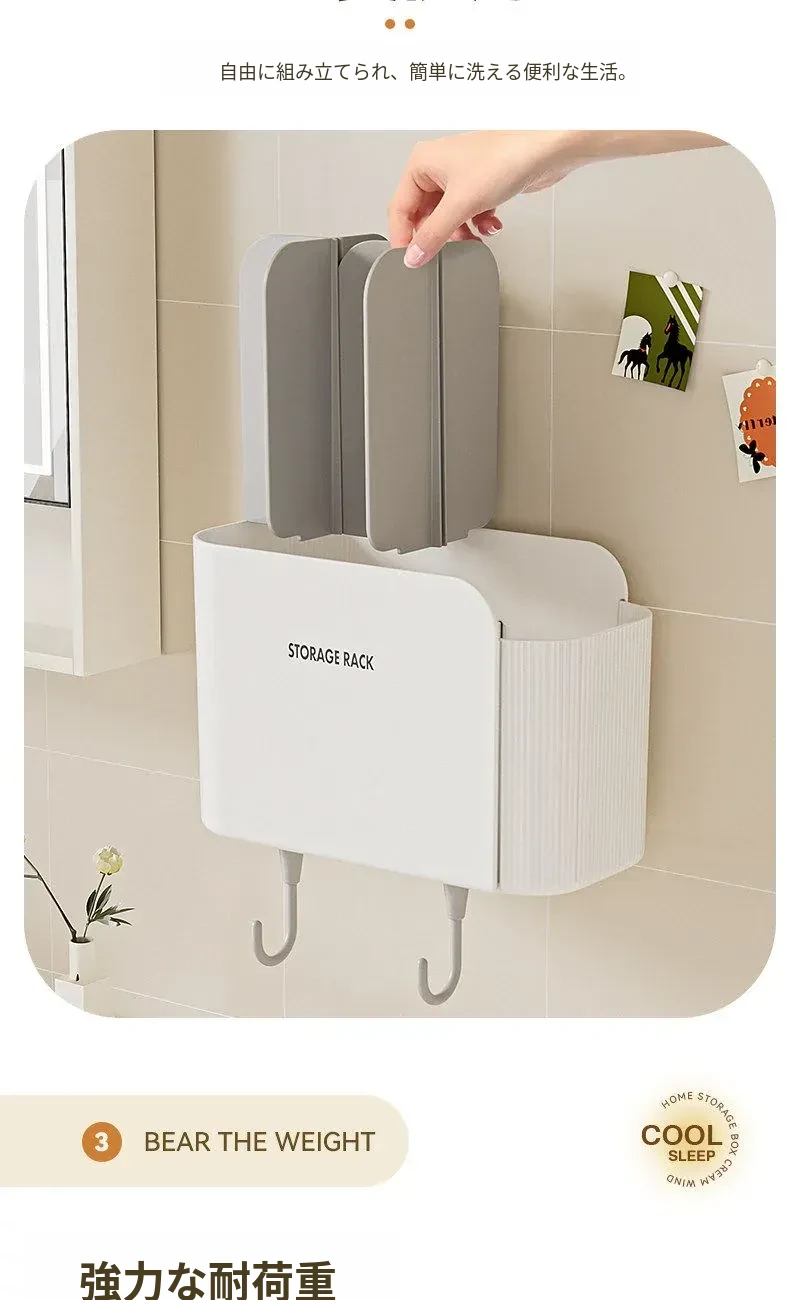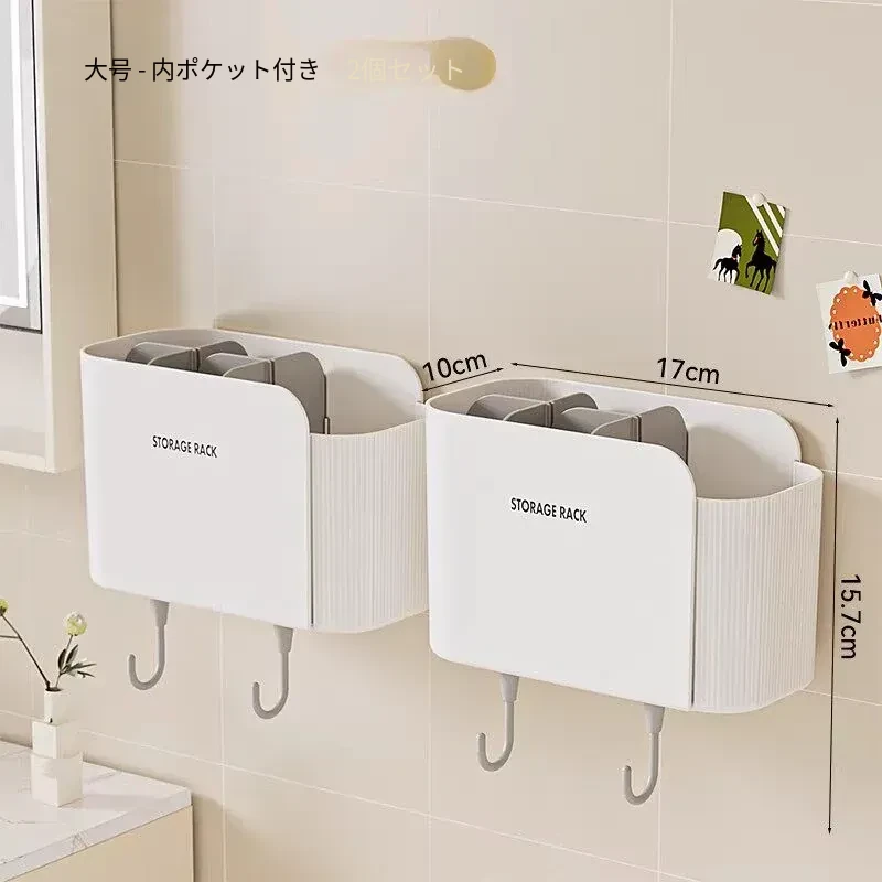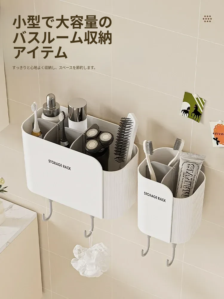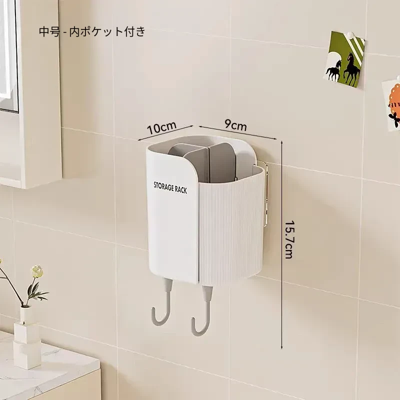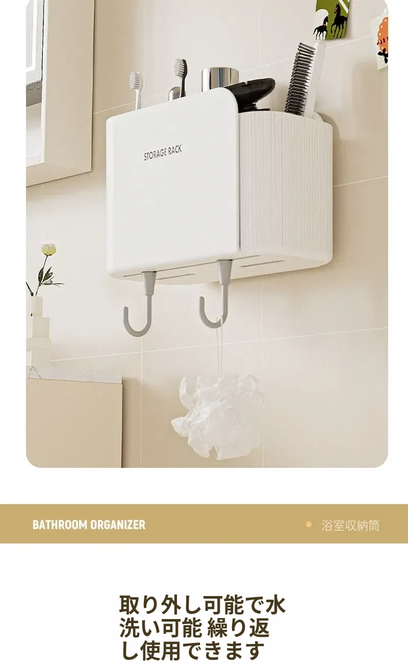 多機能壁掛けバスルーム収納棚 - シェーバーや洗面用具、歯ブラシ・歯磨き粉・櫛をすっきり整理!おしゃれで実用的な収納で、毎日の身支度がもっと楽に!
