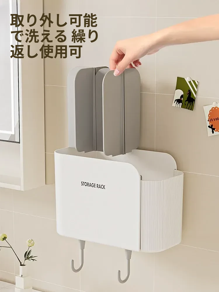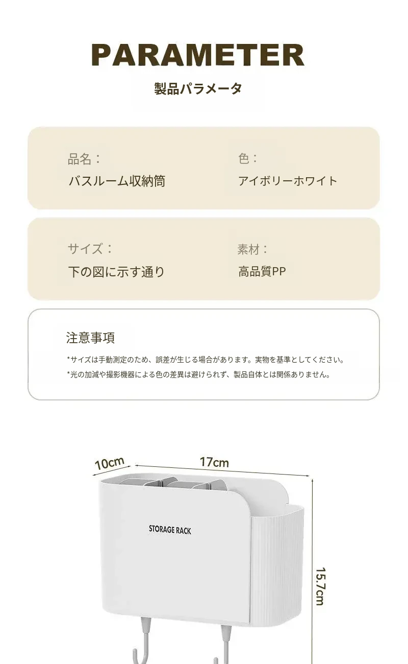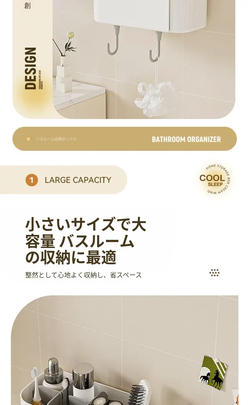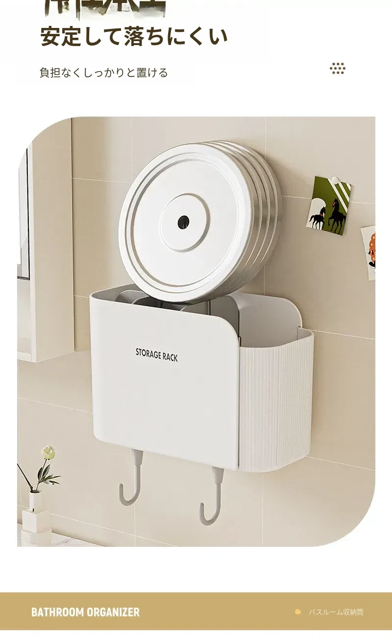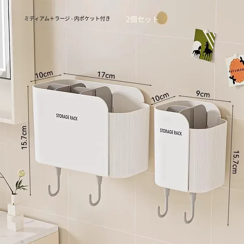多機能壁掛けバスルーム収納棚 - シェーバーや洗面用具、歯ブラシ・歯磨き粉・櫛をすっきり整理!おしゃれで実用的な収納で、毎日の身支度がもっと楽に!