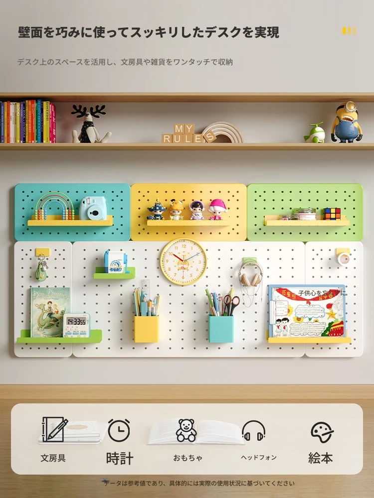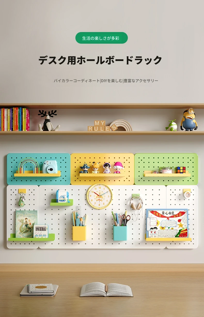 壁掛け穴あきボード収納棚 - 学生・家庭・寮に最適!書 desk の上をスッキリ整理できる金属製ディスプレイラックで、スタイリッシュな空間を実現。収納力抜群で、使いやすさも抜群!