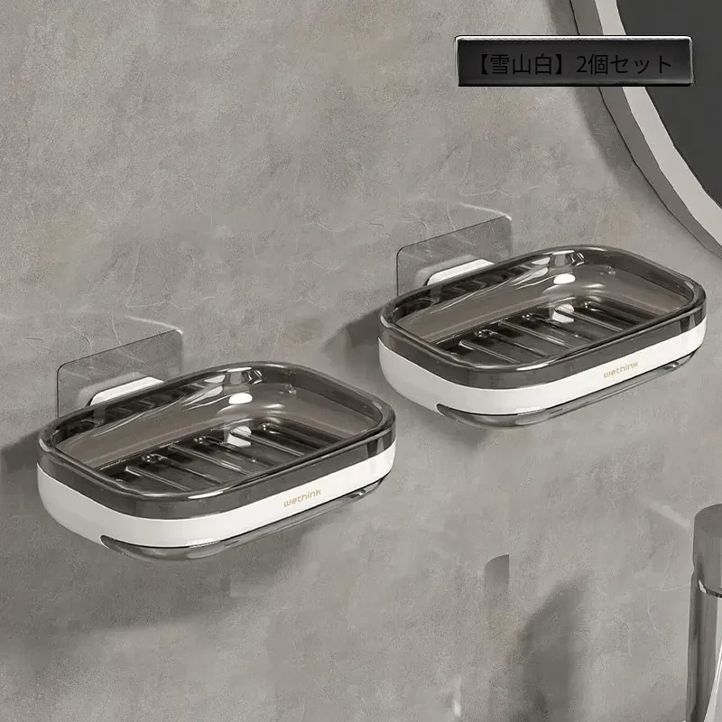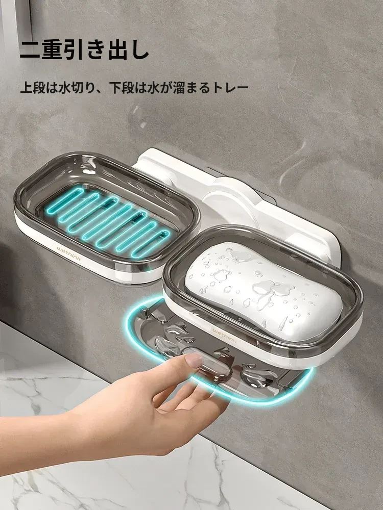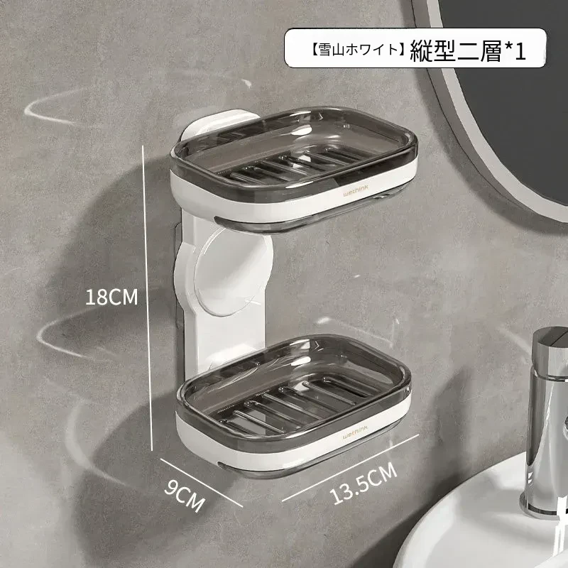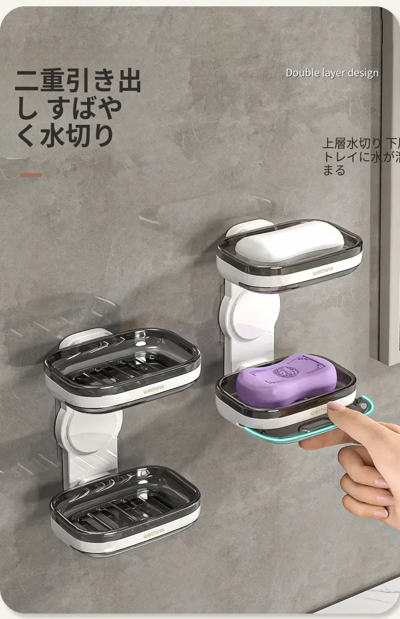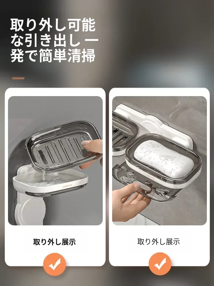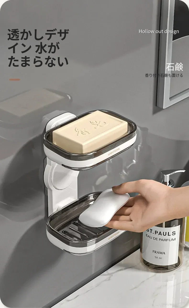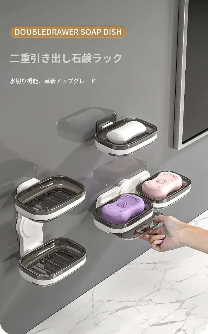 壁掛け式ソープホルダー - 取り付け不要で便利な二重層デザイン!バスルームに最適な石鹸収納ラック。水切り機能付きで、清潔さを保ちながらおしゃれに整理整頓!