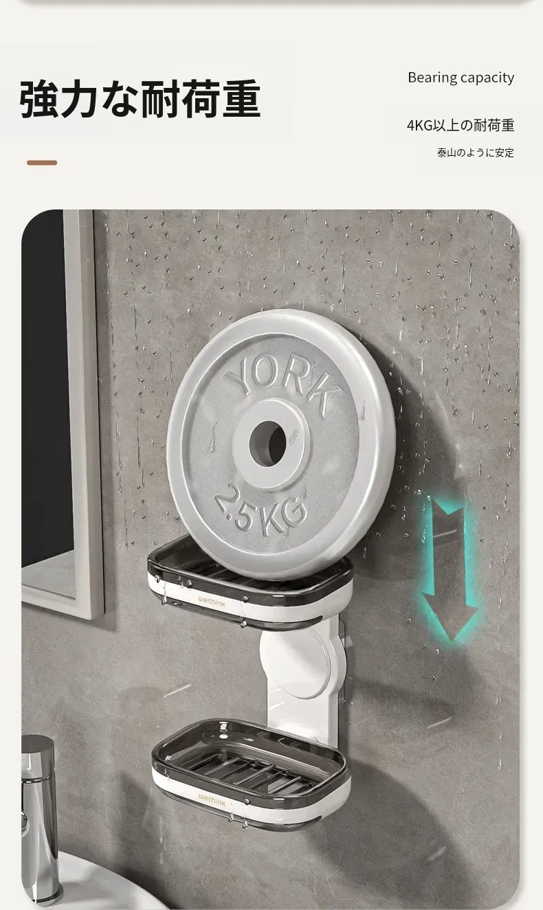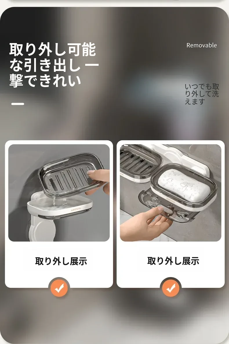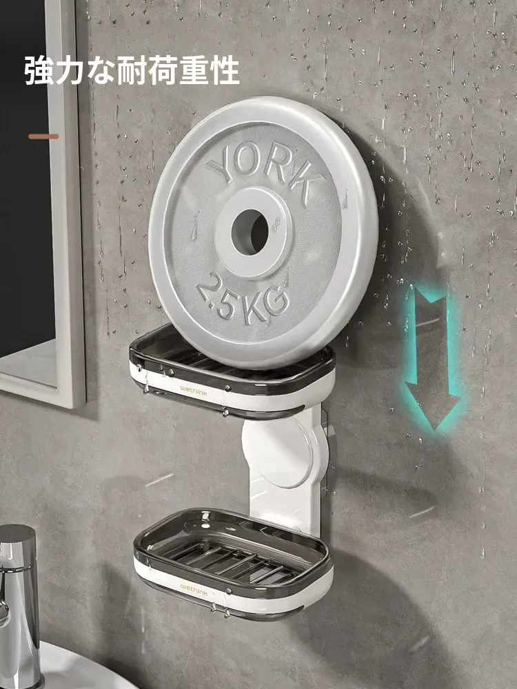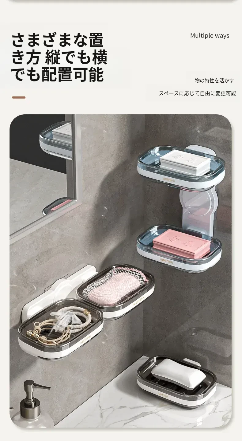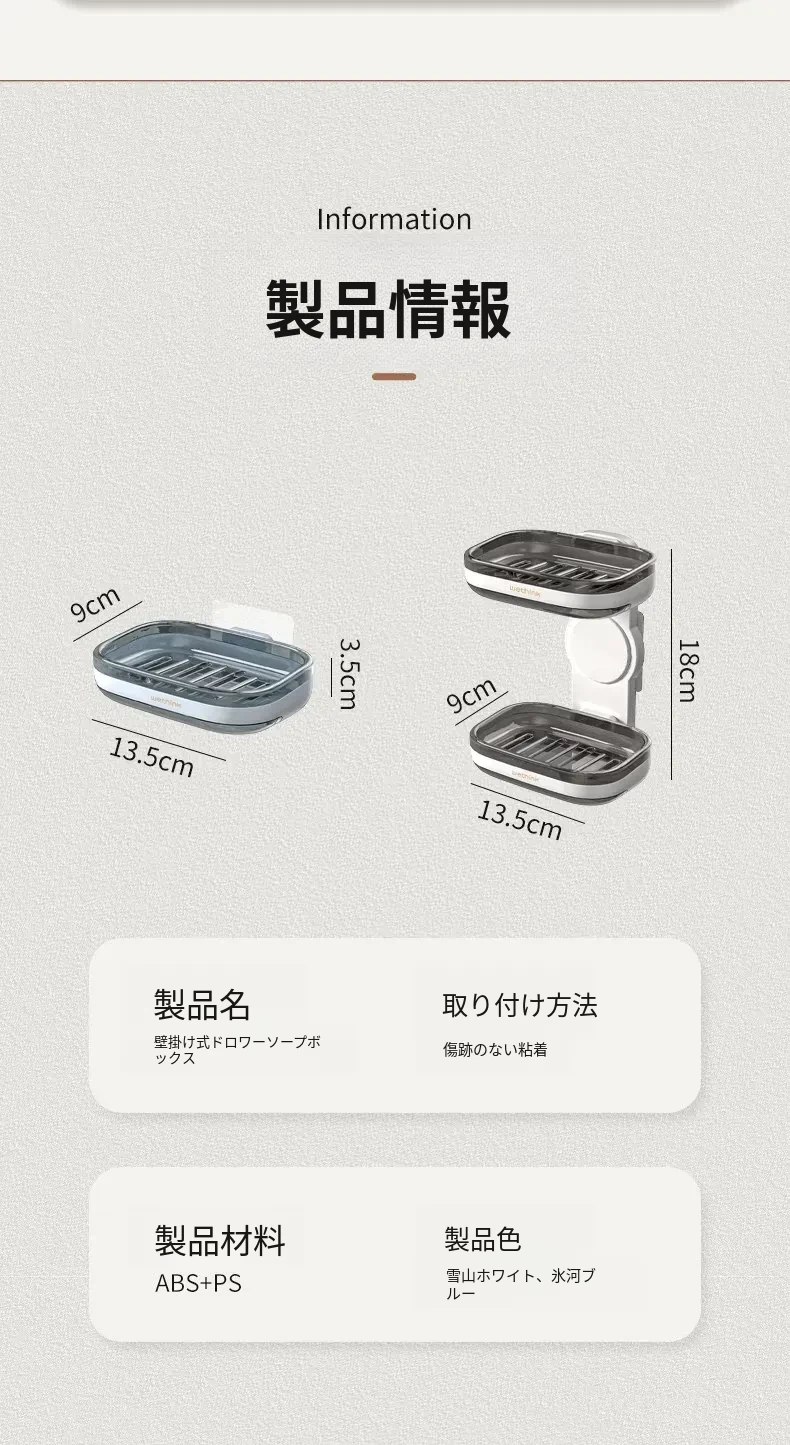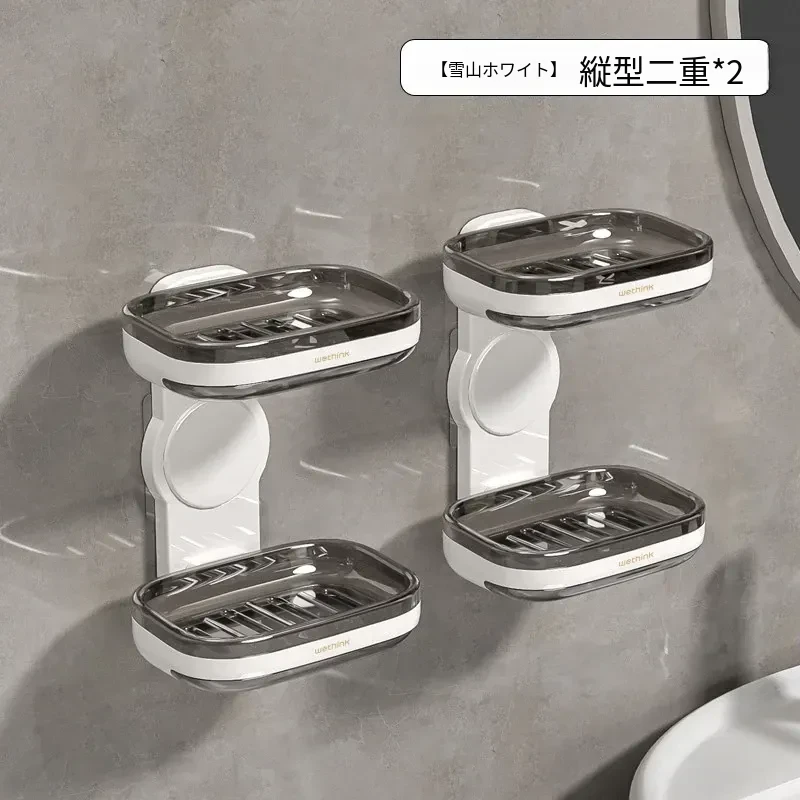 壁掛け式ソープホルダー - 取り付け不要で便利な二重層デザイン!バスルームに最適な石鹸収納ラック。水切り機能付きで、清潔さを保ちながらおしゃれに整理整頓!