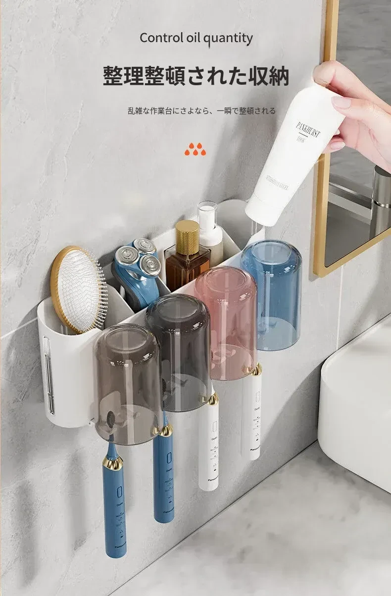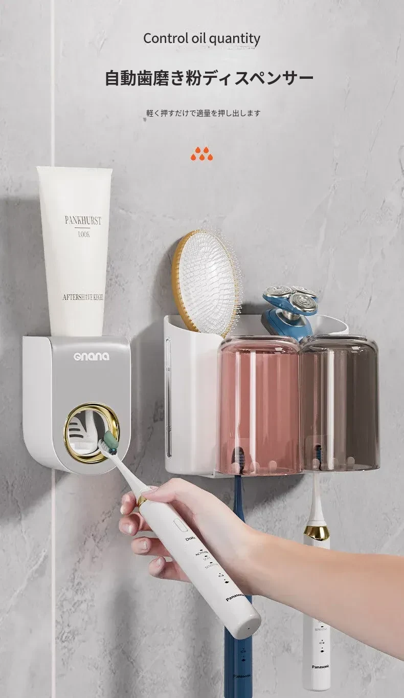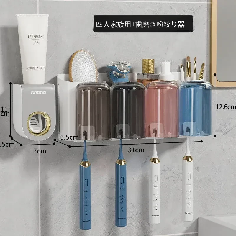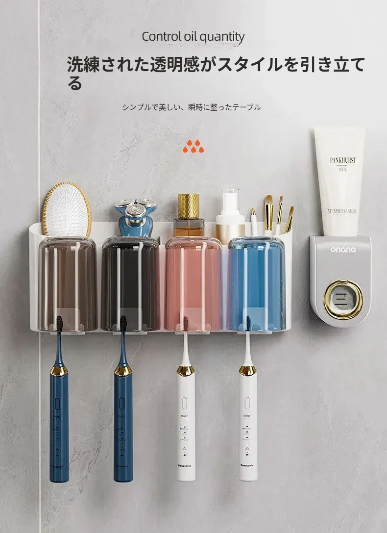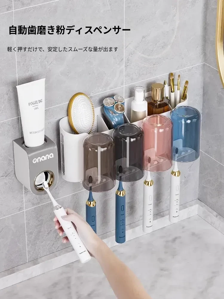 歯ブラシスタンド-4カップ+歯磨き粉ディスペンサー