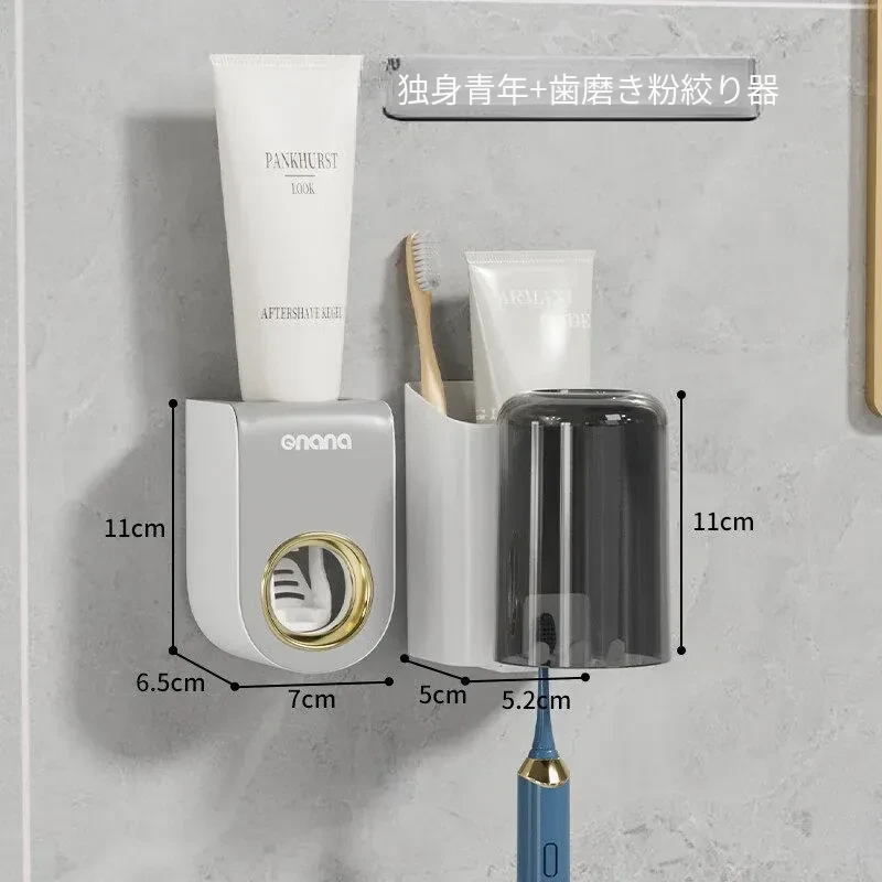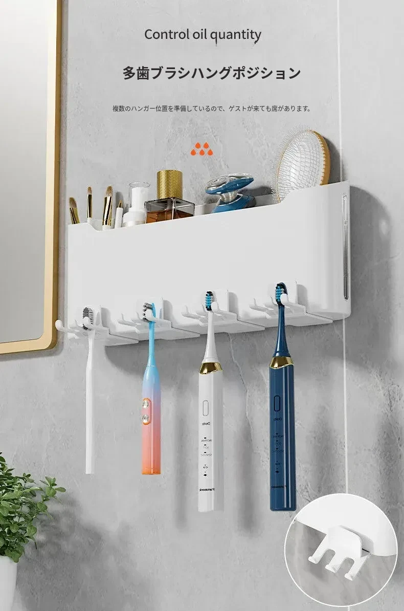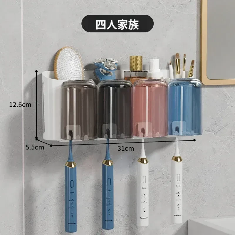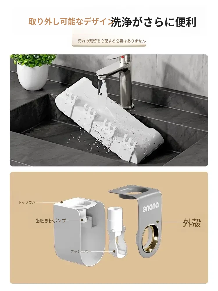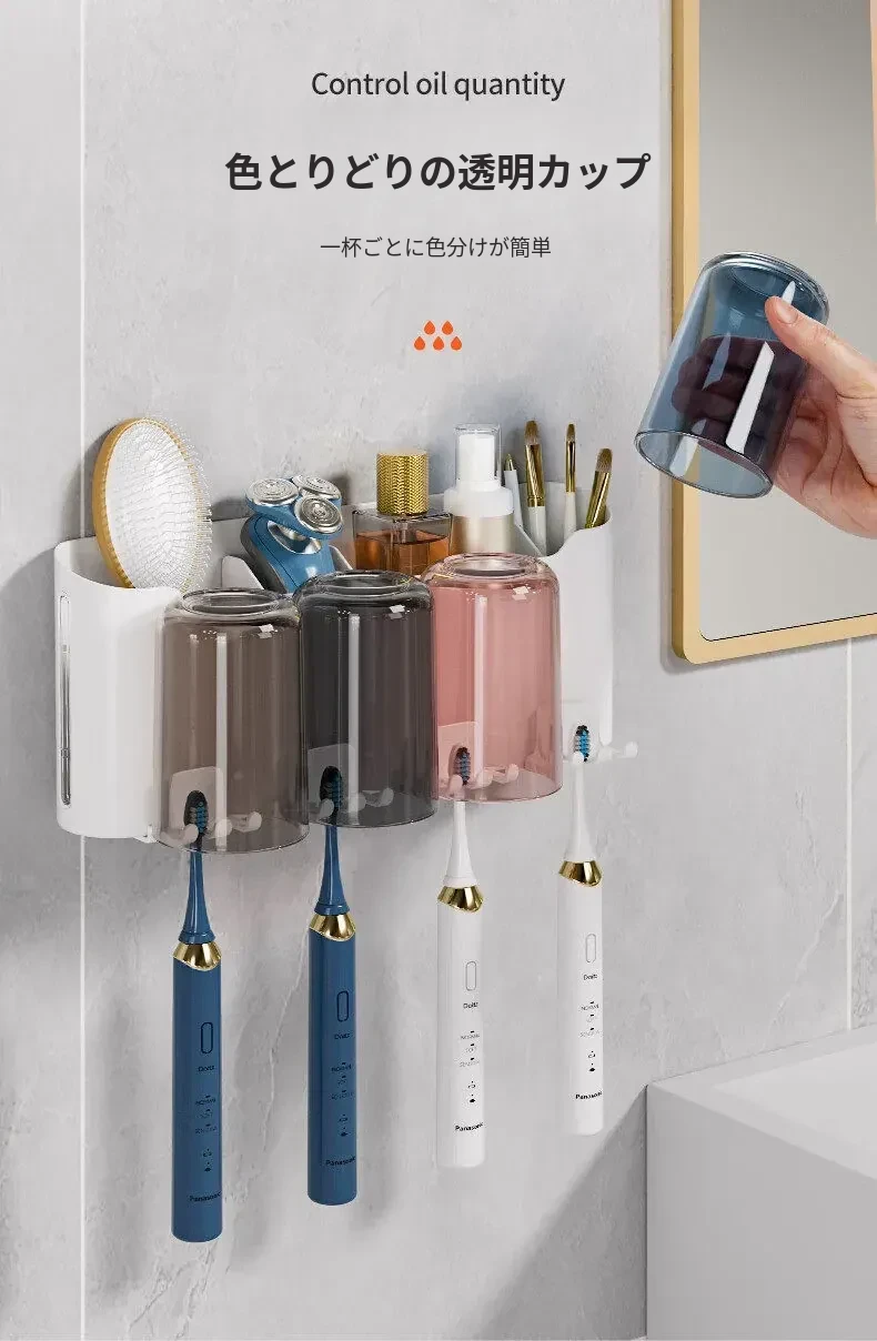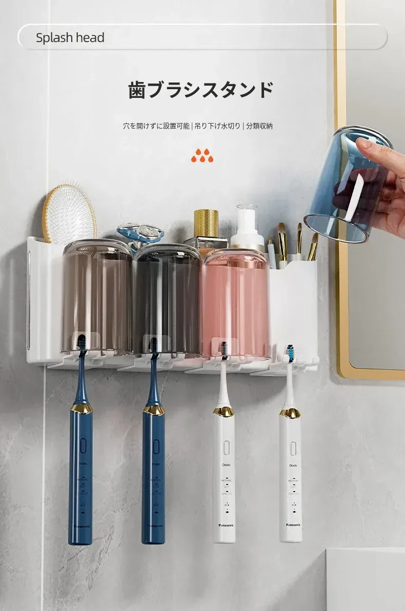 歯ブラシスタンド-4カップ+歯磨き粉ディスペンサー