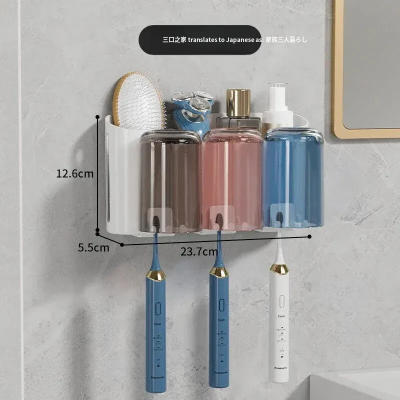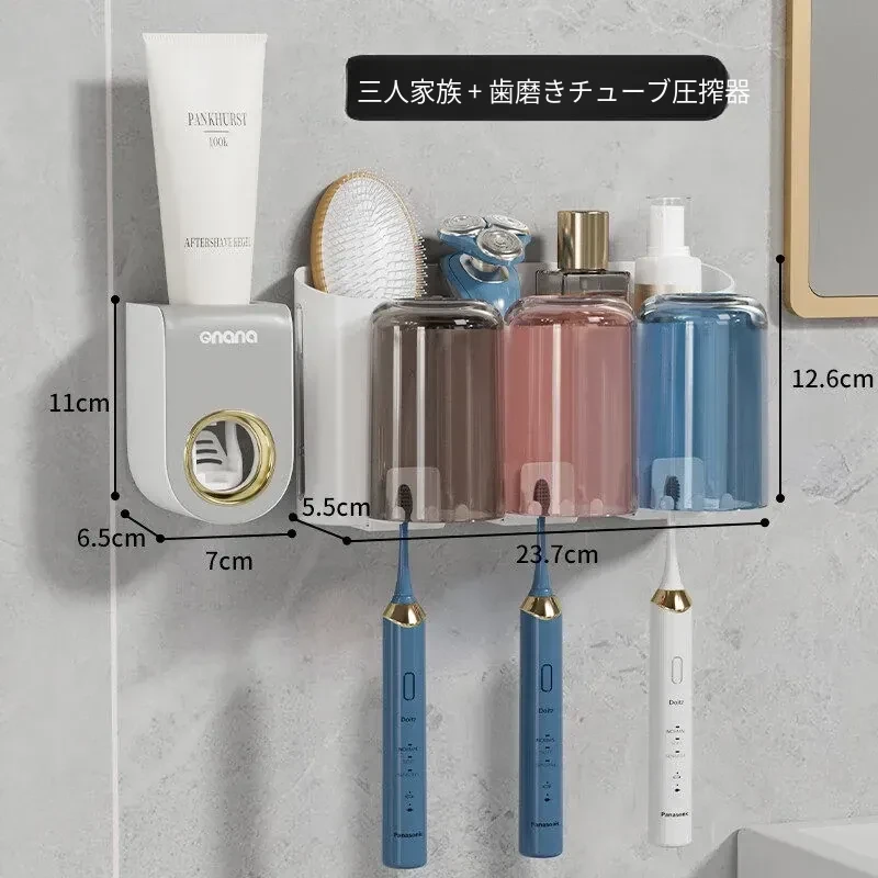 歯ブラシスタンド-3カップ+歯磨き粉ディスペンサー