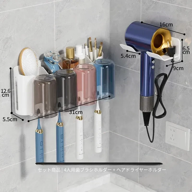 4カップ|歯ブラシスタンド+ヘアドライヤースタンド