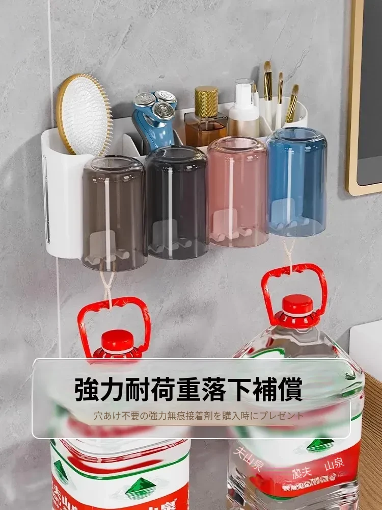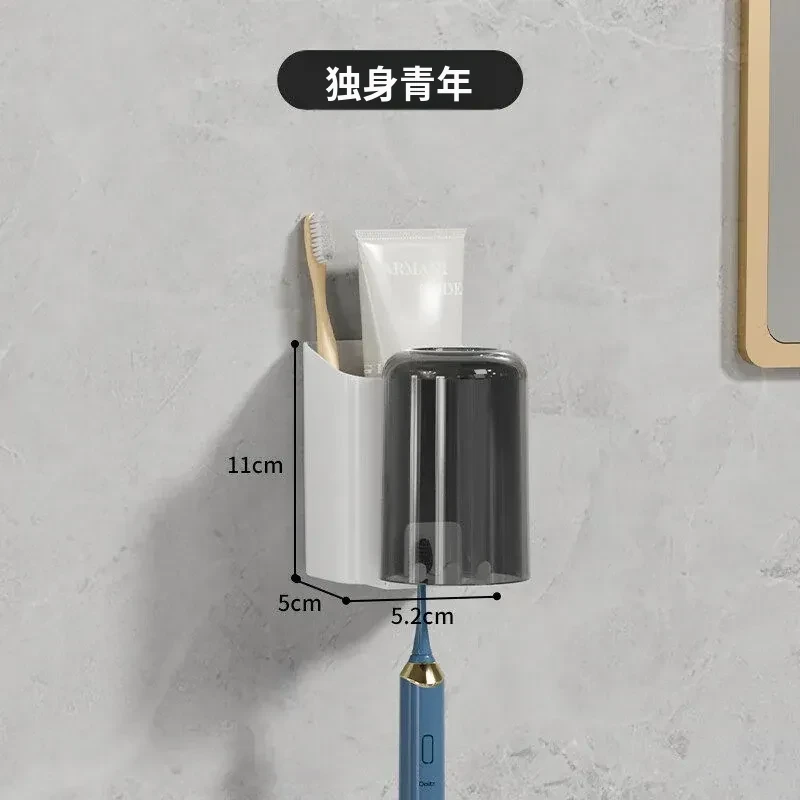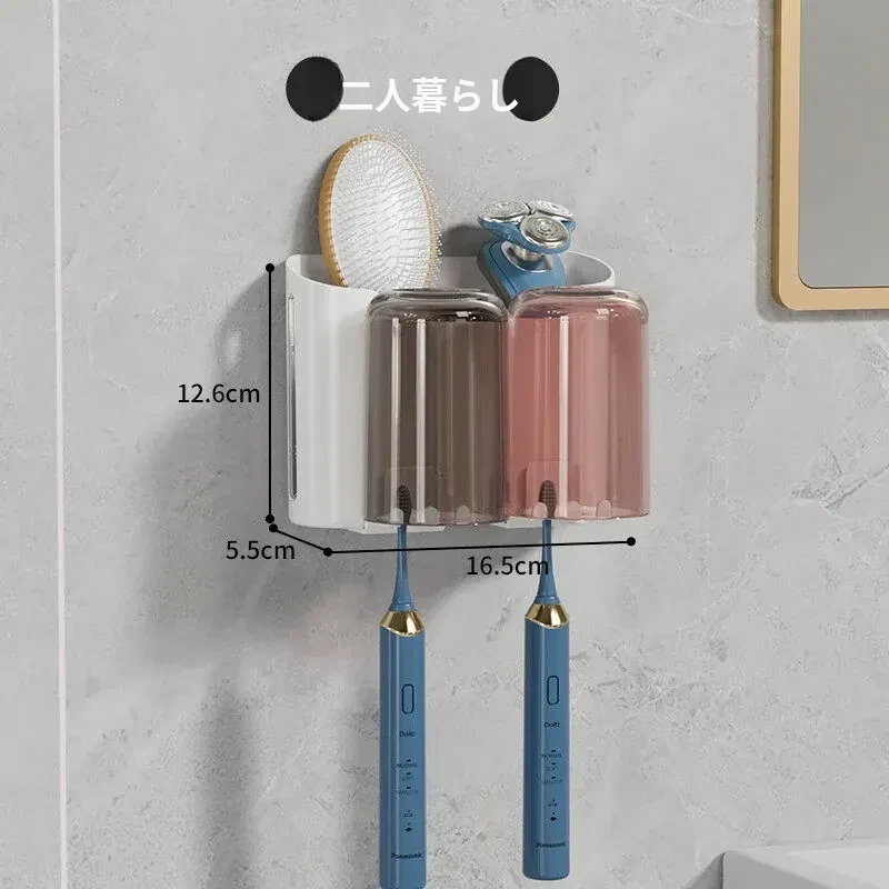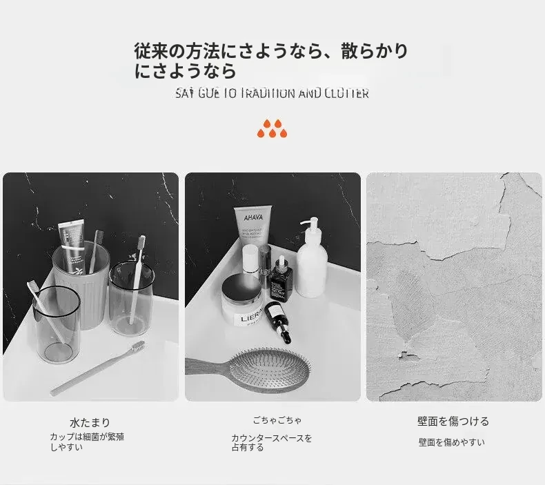 穴あけ不要!透明な歯ブラシスタンド&マウスウォッシュカップ壁掛けセット - スタイリッシュなトイレ空間を演出し、歯磨きがもっと便利に!歯磨き粉ディスペンサー付きで、毎日のケアが楽しくなります。
