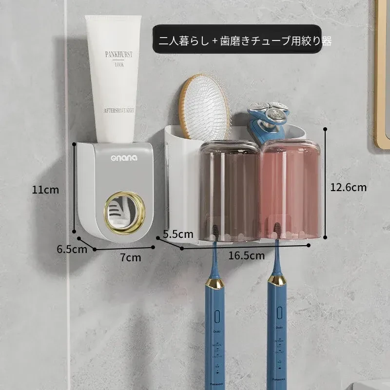 歯ブラシスタンド-2カップ+歯磨き粉ディスペンサー
