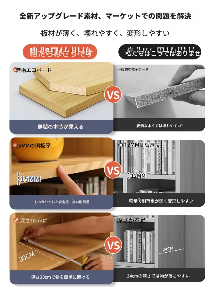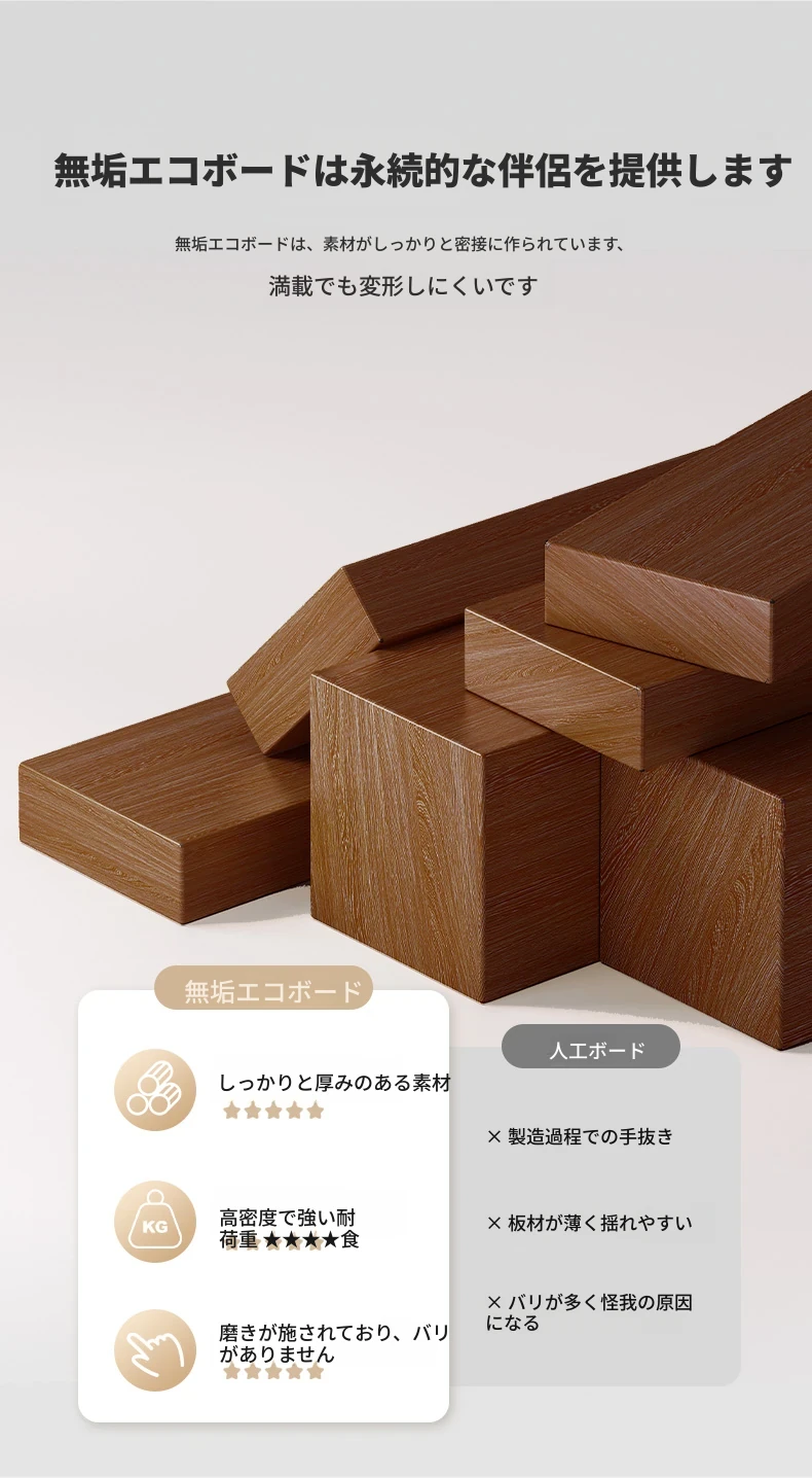 【アップグレード引き出し付き】厚さ15MMの板材⭐ナチュラルウッドパターン三層長40引き出し付き