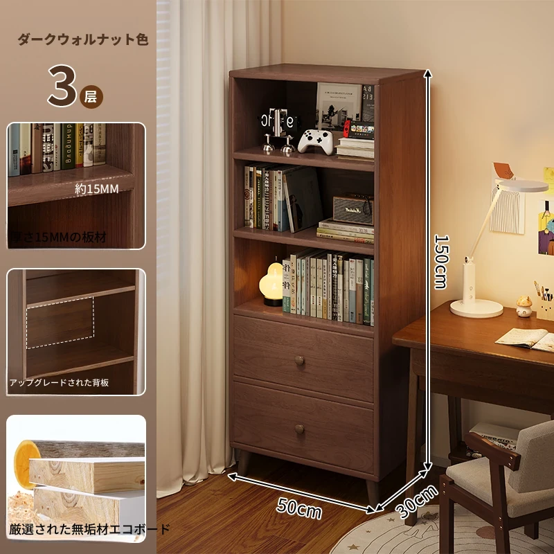 【アップグレード引き出し付き】厚さ15MMの板材⭐ウォールナットカラー三層長50引き出し付き