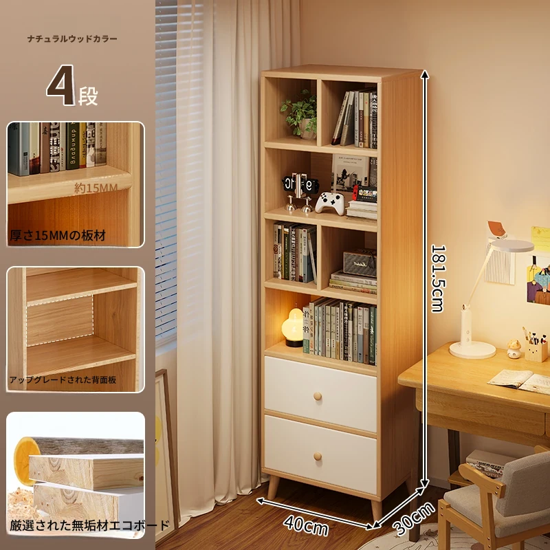 【アップグレード引き出し付き】厚さ15MMの板材⭐ナチュラルウッドパターン四層長40引き出し付き