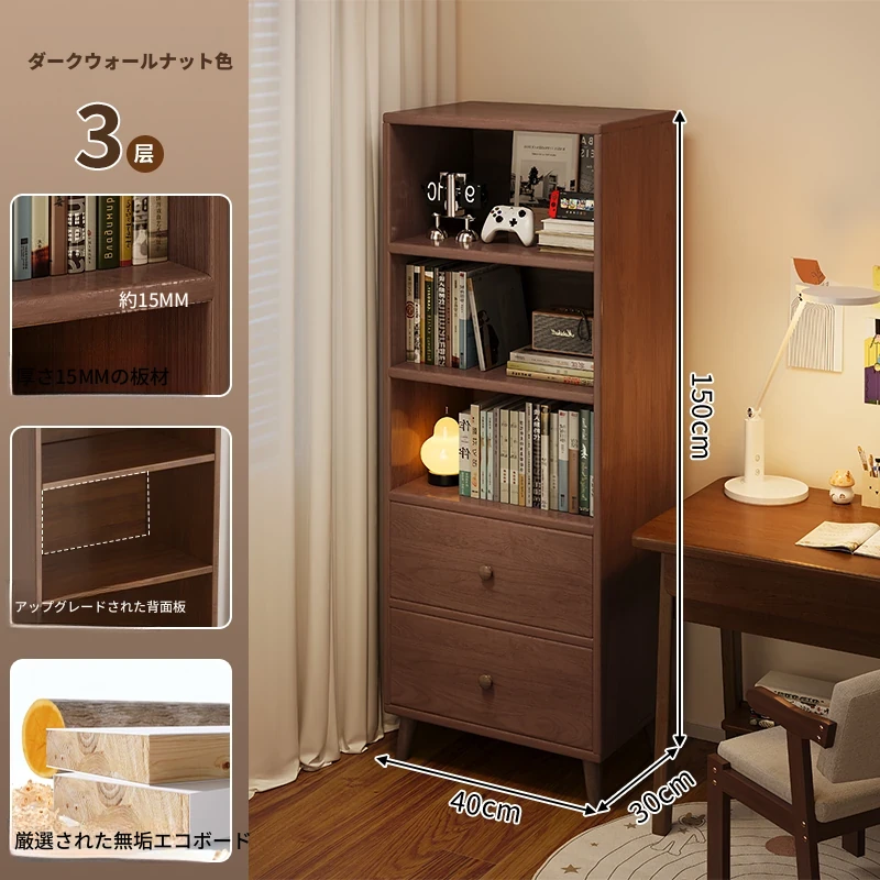 【アップグレード引き出し付き】厚さ15MMの板材⭐ウォールナットカラー三層長40引き出し付き