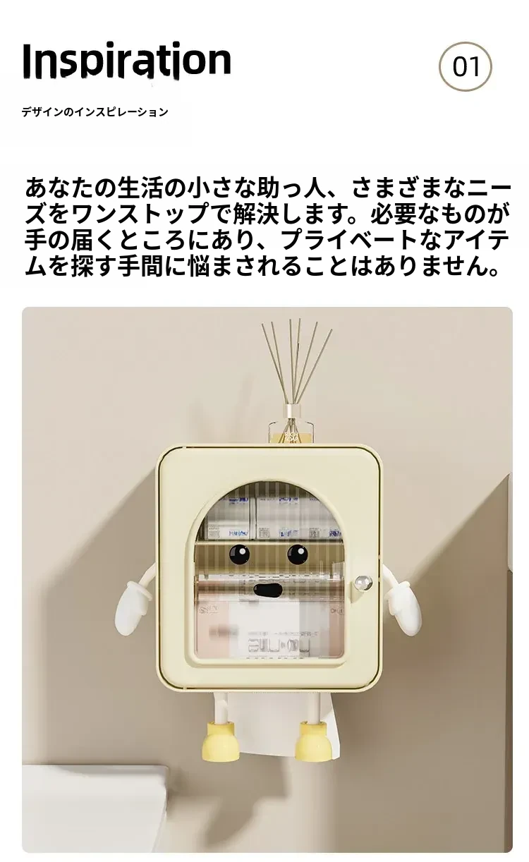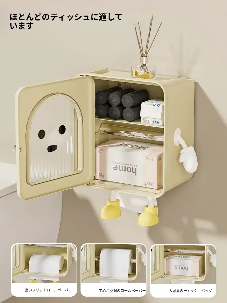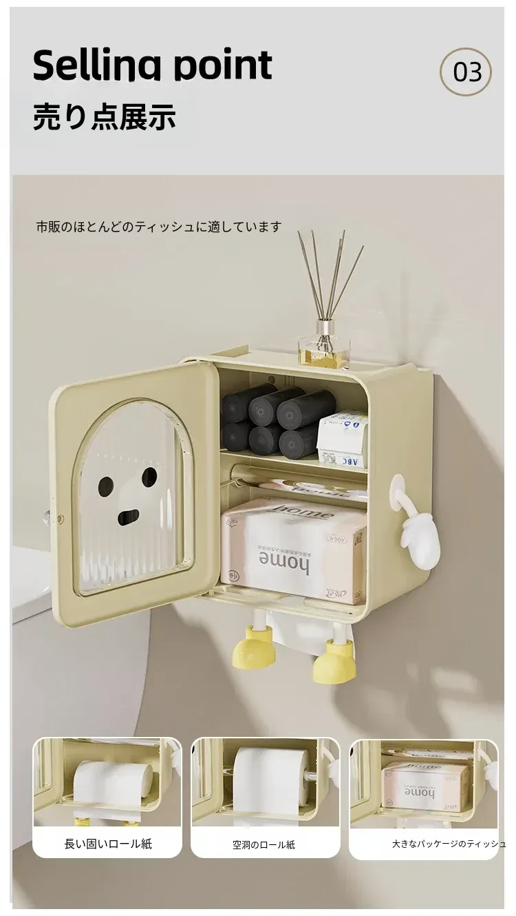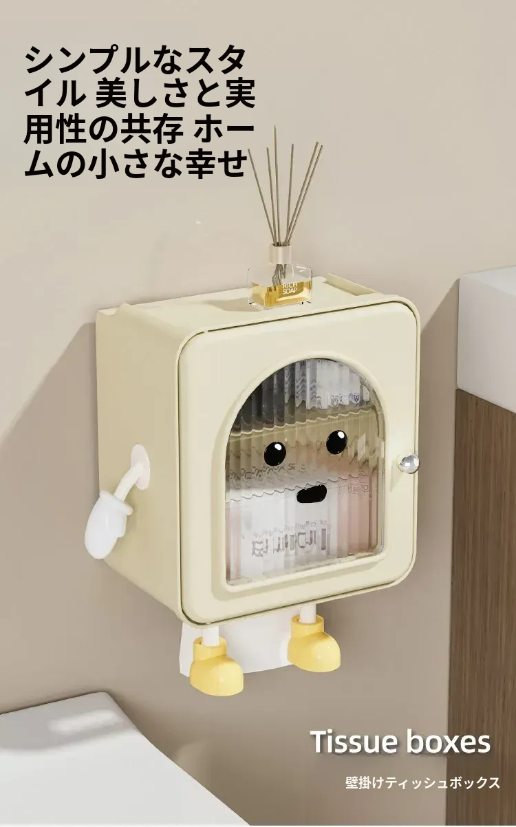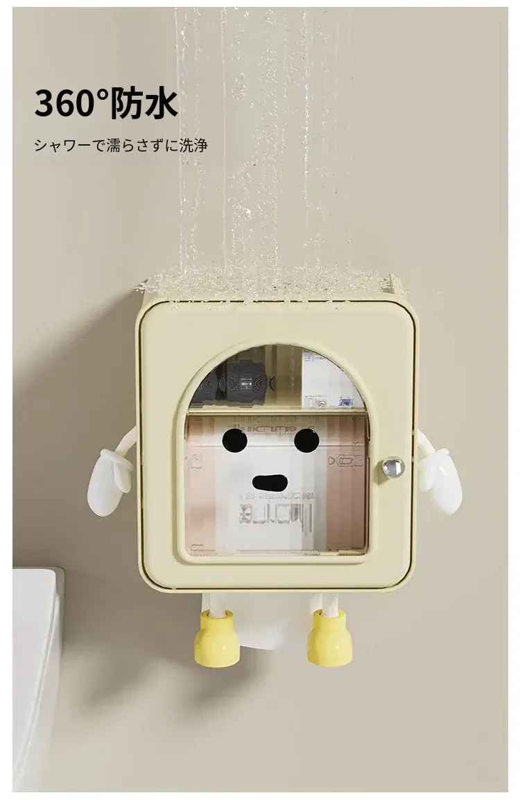 防水トイレットペーパーボックス|穴あけ不要の壁掛け式トイレットペーパー収納|バスルームに最適な衛生的でスタイリッシュなトイレットペーパーラック!おしゃれで便利なトイレ空間を演出!