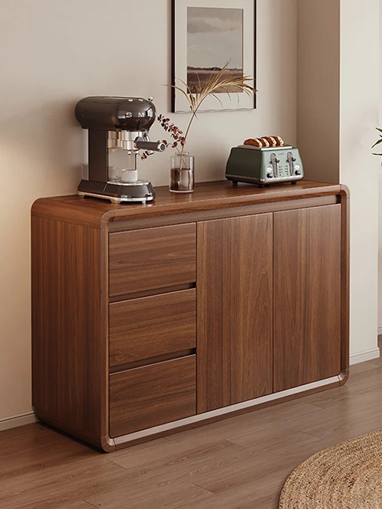 壁に寄せられる一体型収納キャビネット - 高品質の天然木製、スタイリッシュなデザインで、リビングの小物やティー用品をスマートに収納!おしゃれで機能的な収納スペースを実現し、家のインテリアを引き立てます。