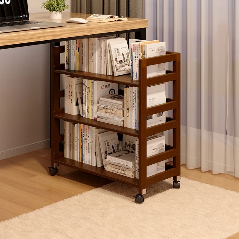書籍収納ラック 家庭用デスク下移動式マルチレイヤー小型カート 寮用本収納に最適!便利な収納アイテムで、スペースを有効活用して整理整頓を実現!